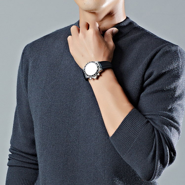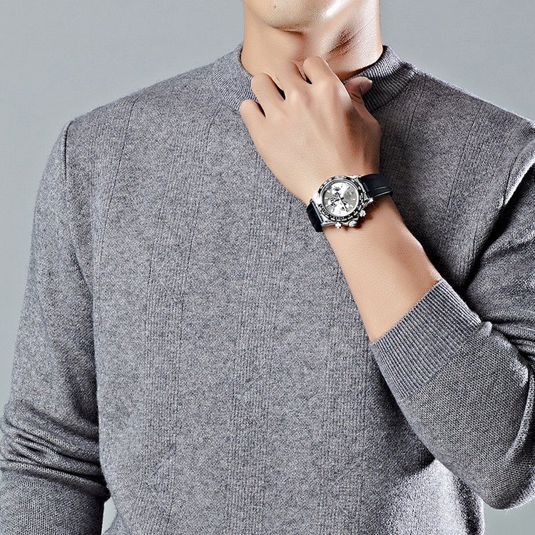 保罗秋冬装新款加厚保暖半高领羊毛衫中年爸爸男装休闲打底针织衫