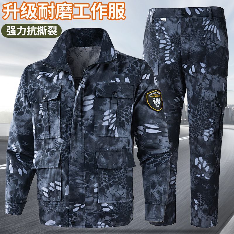迷彩工作服套装黑蟒春秋劳保加厚汽修户外耐磨工装建筑工地迷彩服