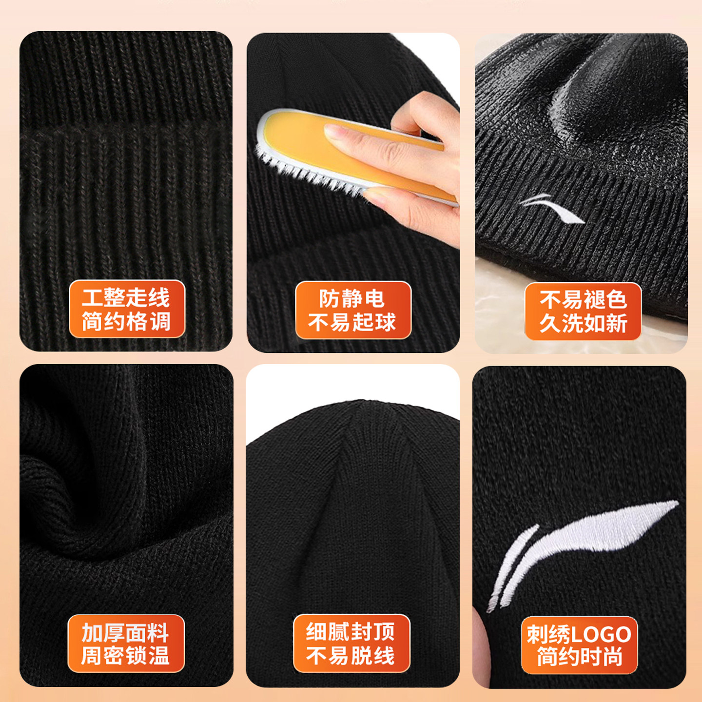 李宁针织帽女冬季加厚加绒帽子防风保暖情侣休闲时尚运动毛线帽男