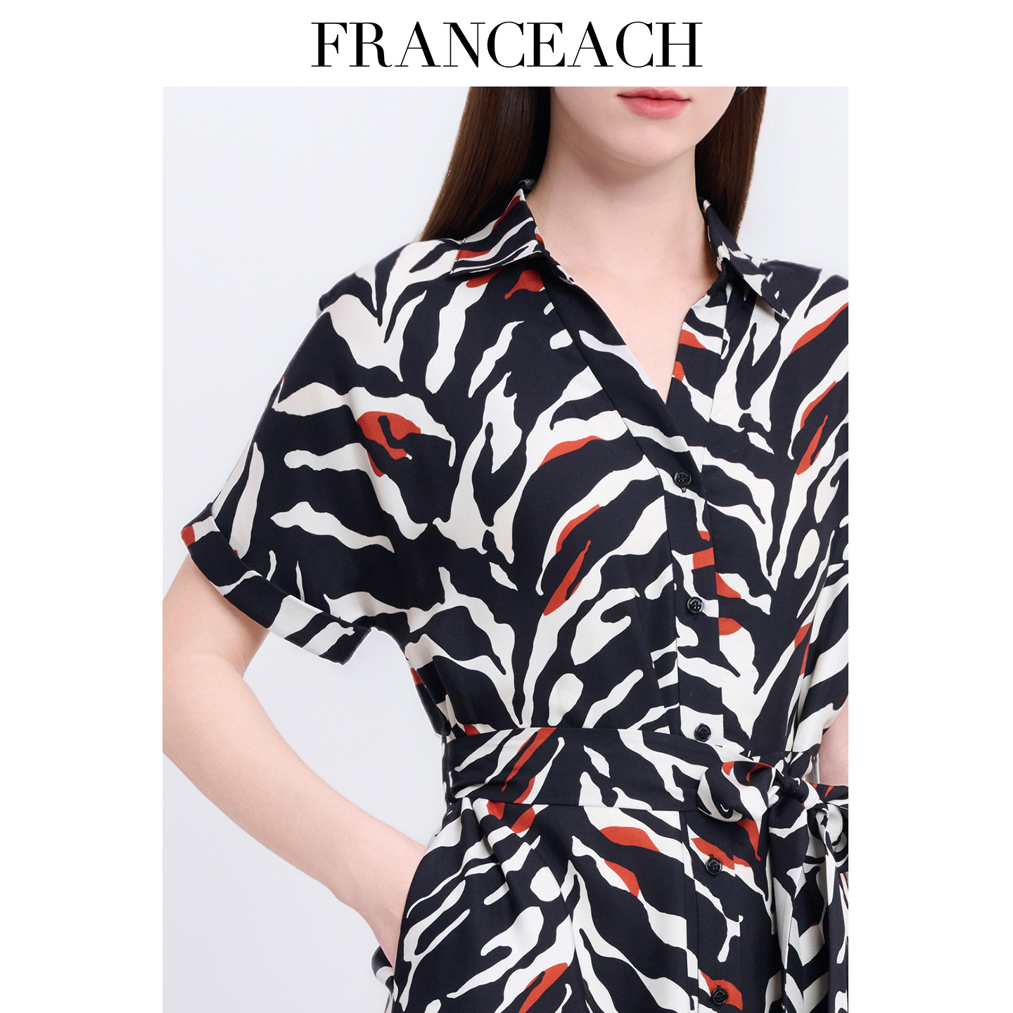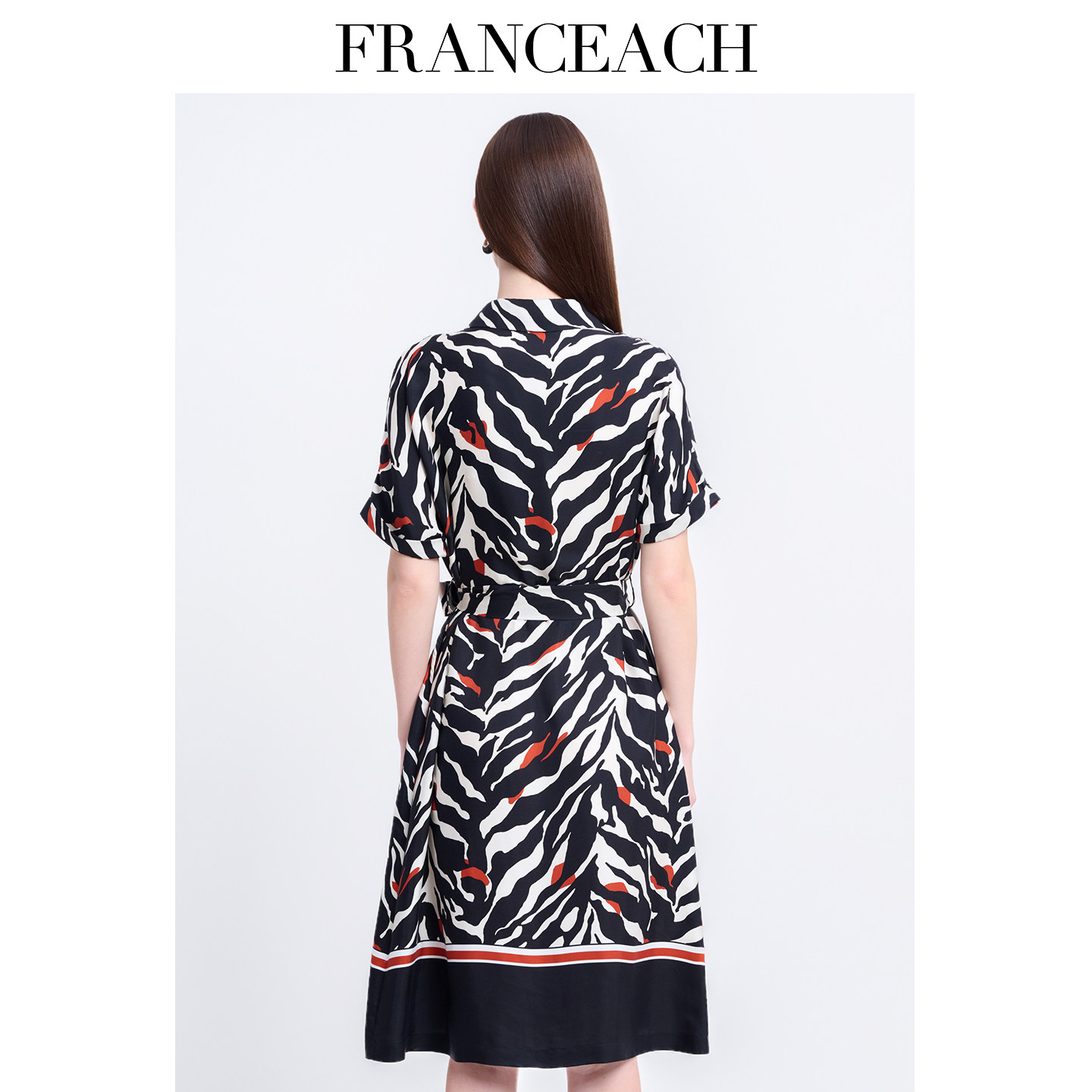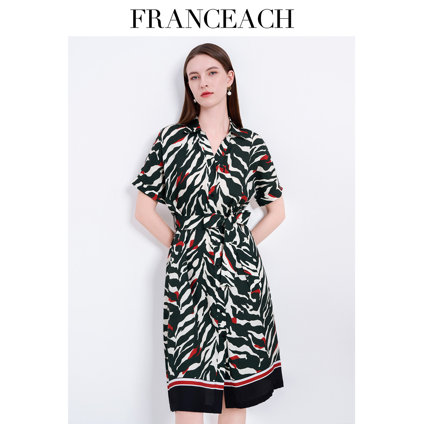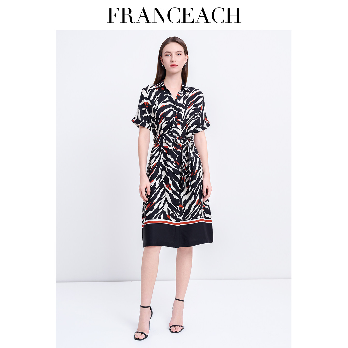 法涵意弛高级感印花真丝连衣裙女2025夏新款通勤气质桑蚕丝衬衫裙