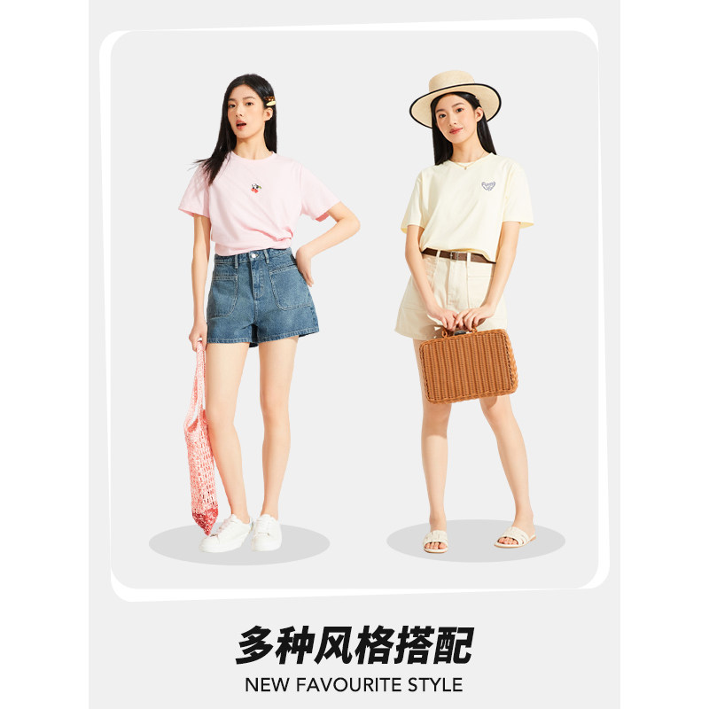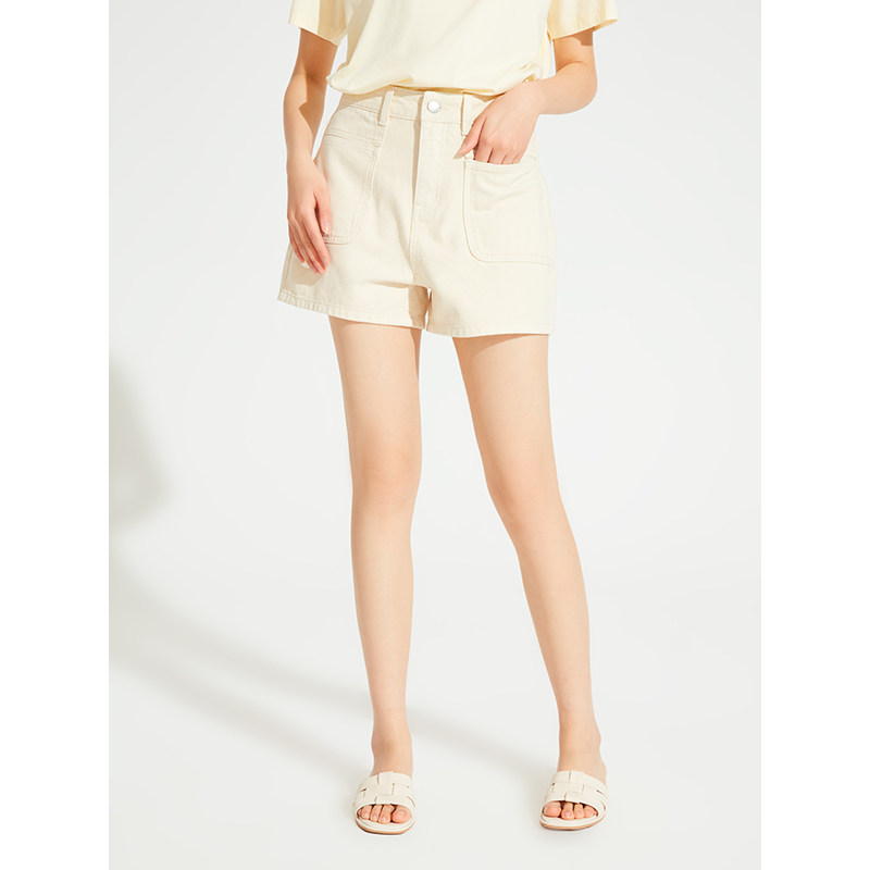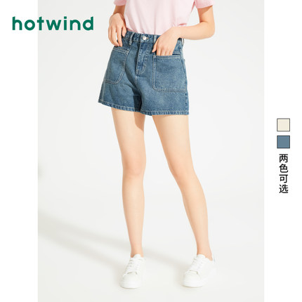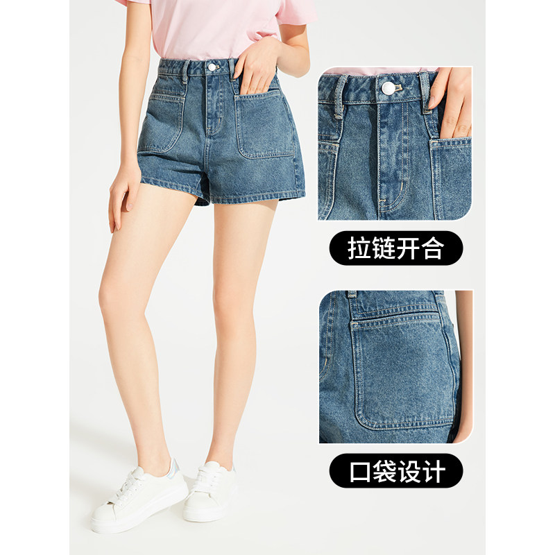 热风女装24夏新款女士复古方形口袋牛仔短裤百搭休闲牛仔裤女裤