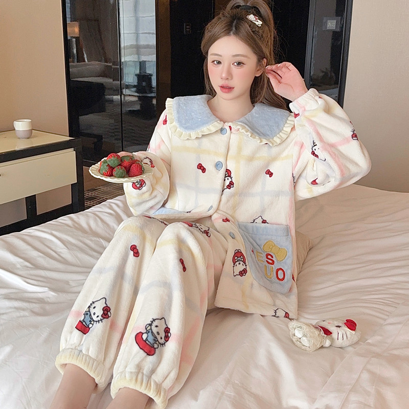睡衣女秋冬法兰绒加厚甜美公主风大码200斤可爱冬季珊瑚绒家居服