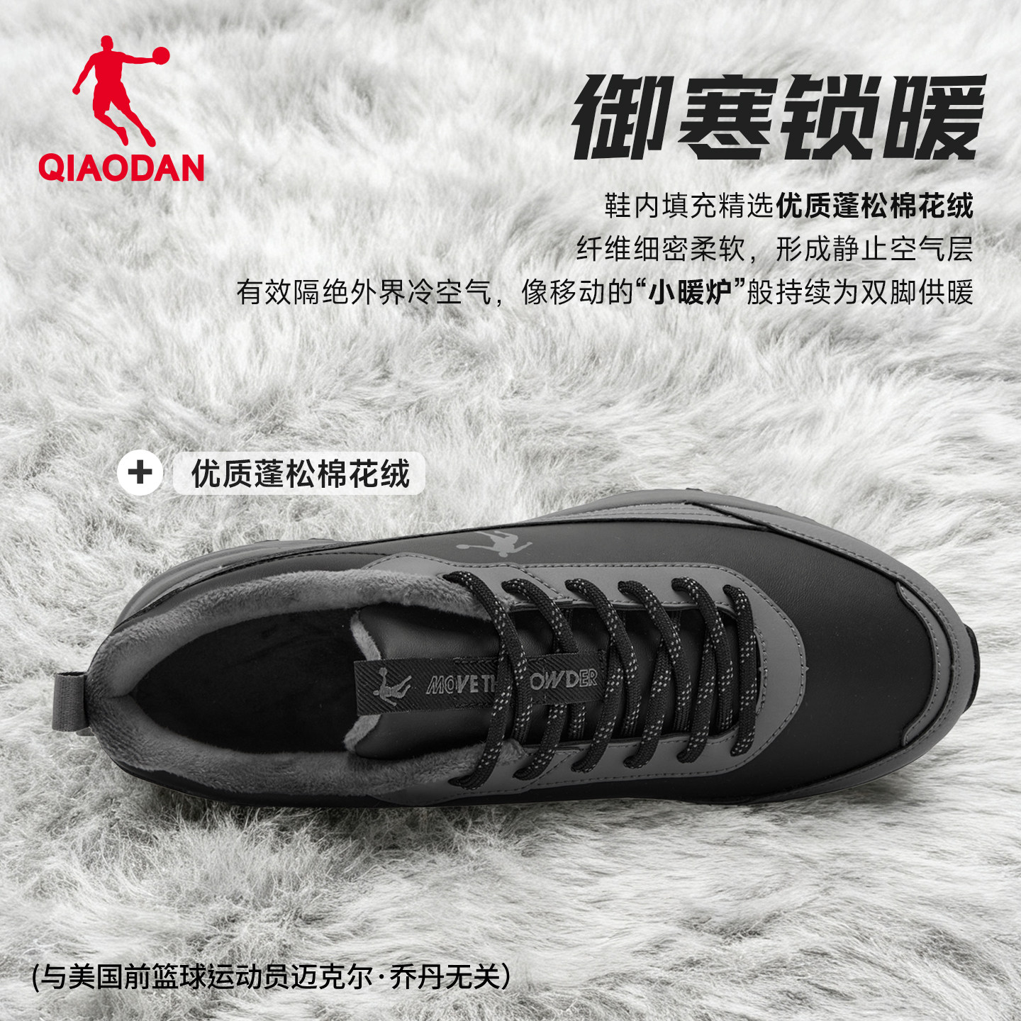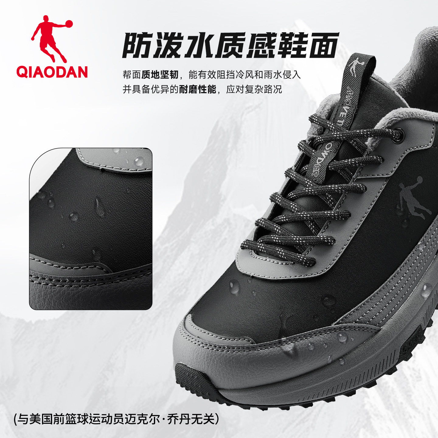 乔丹加绒外穿登山鞋男徒步运动秋冬季新款保暖黑色防水防滑棉鞋子