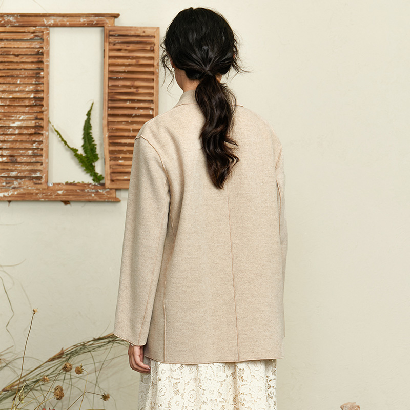 TALASA商场同款羊毛呢气质西服外套女2025冬新款休闲百搭复古宽松