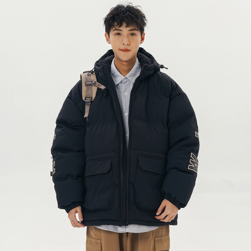 当潮马男冬季短款2025新款休闲棉服连帽百搭加厚棉衣外套HTLB789
