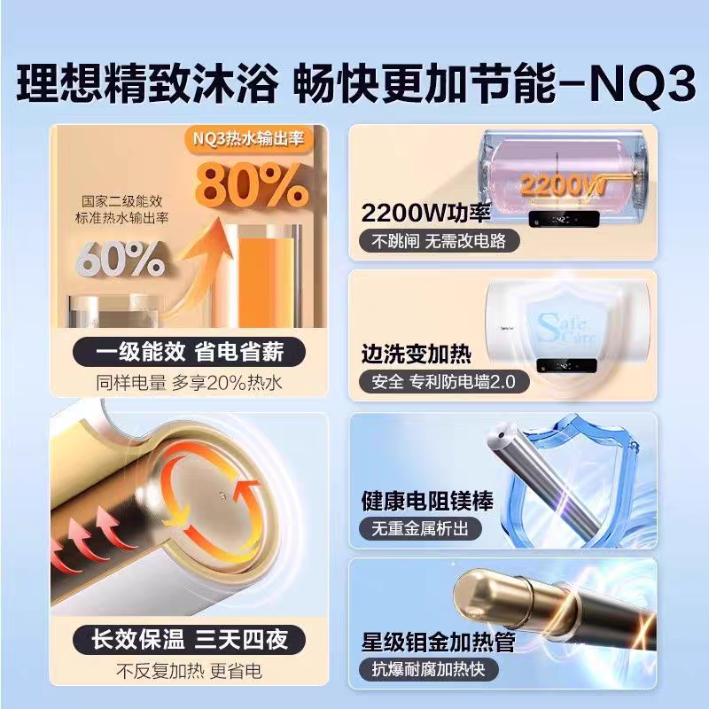 海尔Leader电热水器一级能效家用卫生间洗澡节能速热50升60升NQ3
