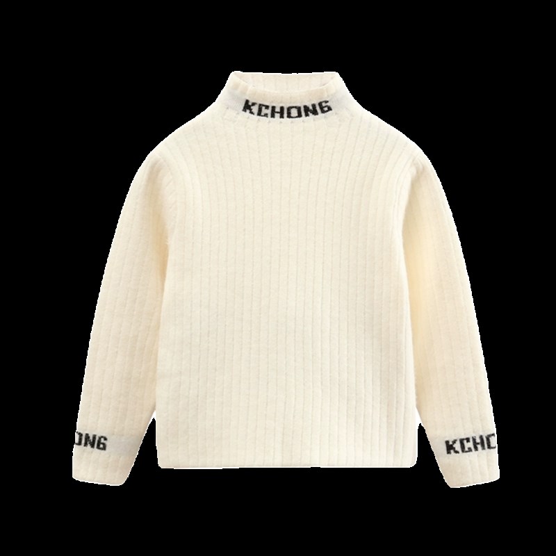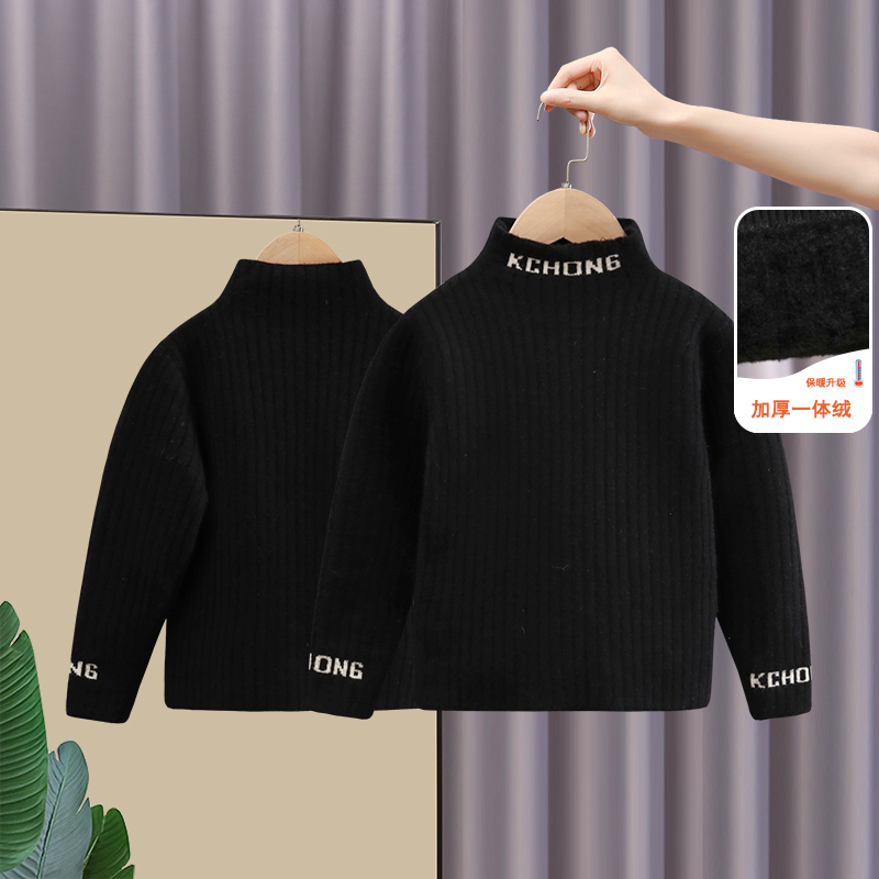 加绒毛衣男童一体绒加厚宝宝半高领打底衫黑色冬季内搭儿童羊毛衫