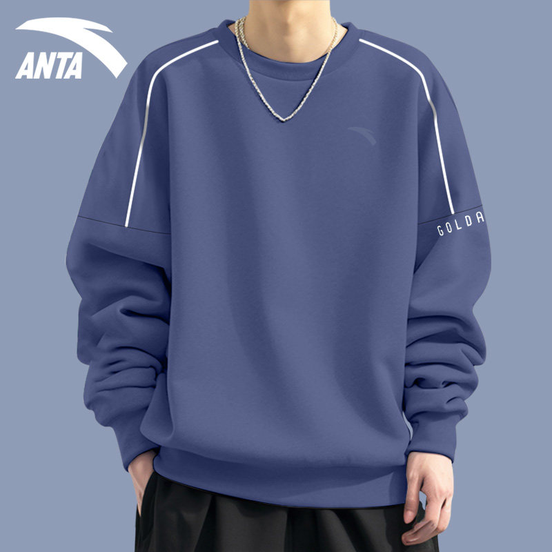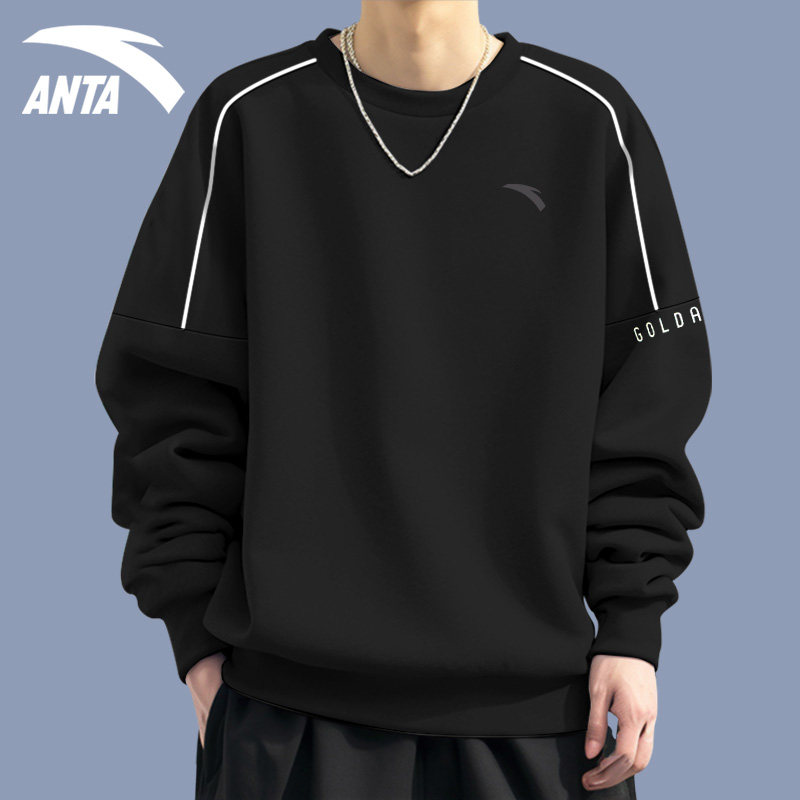 安踏卫衣男装圆领长袖t恤春秋2025新款旗舰店加绒宽松休闲套头衫