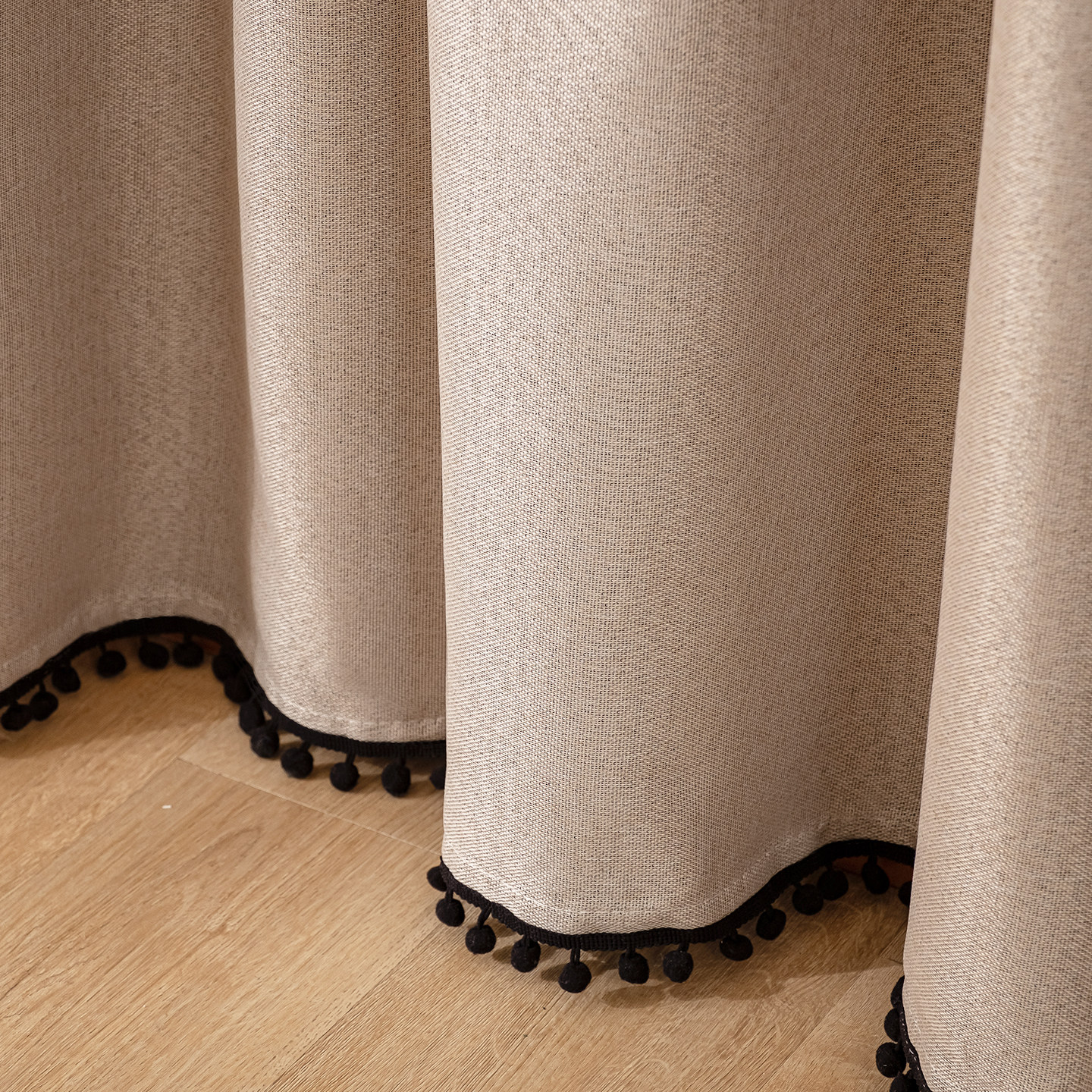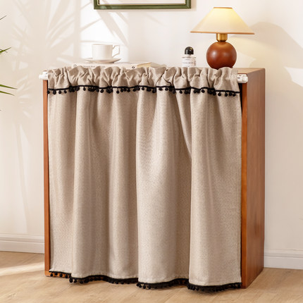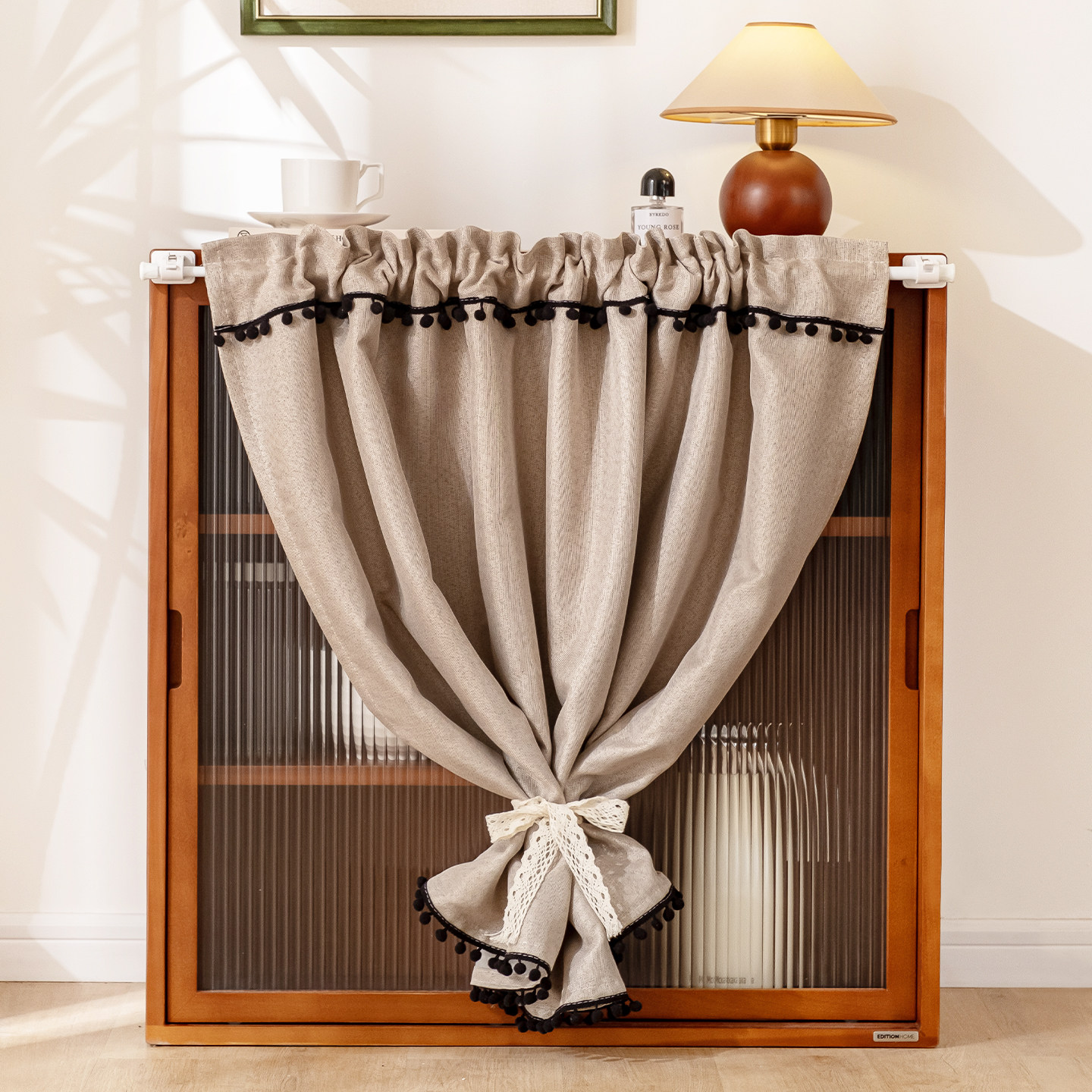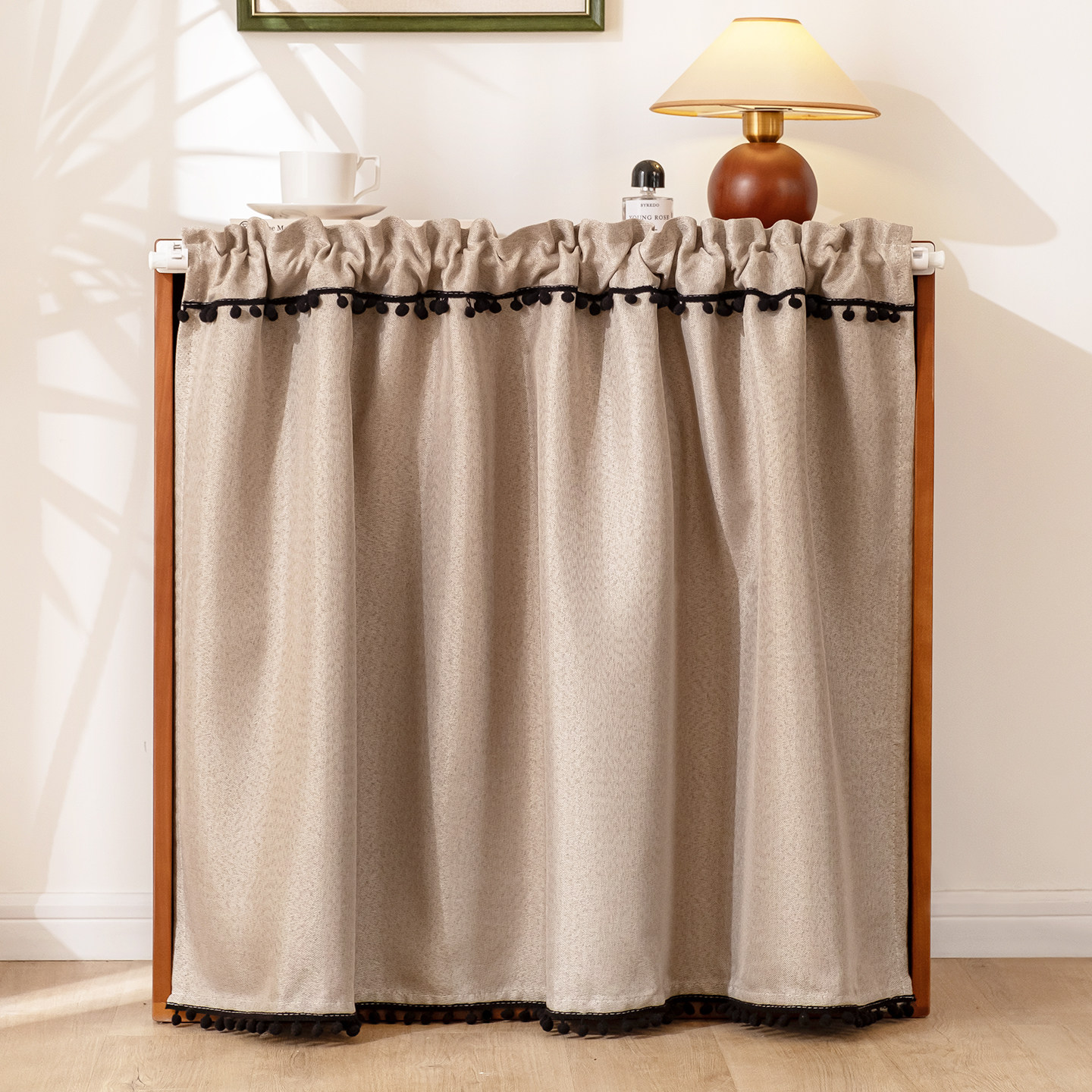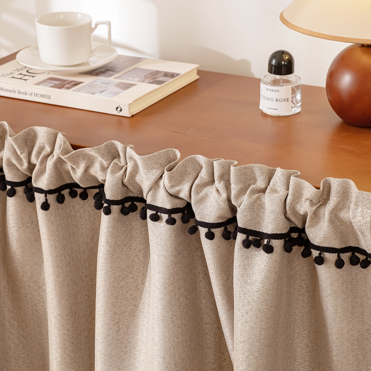 米色遮光厨房遮挡帘美式黑色流苏门帘窗帘短半帘柜门帘遮丑免打孔
