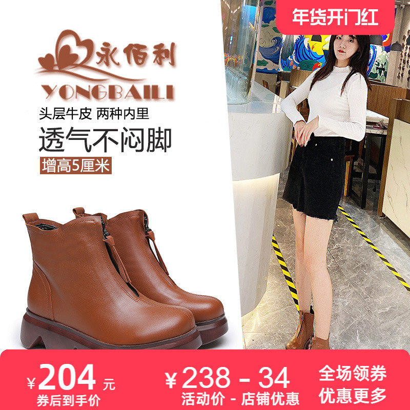 真皮厚底短靴女2025冬新款手工圆头高跟加绒马丁靴女鞋松糕鞋皮鞋