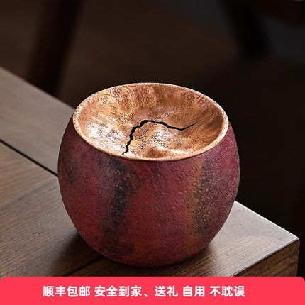 纯手工复古紫铜建水茶洗茶渣缸水盂带盖养壶承水洗桌面茶渣收纳