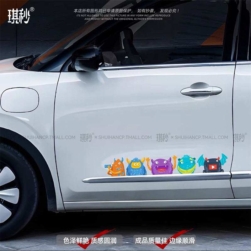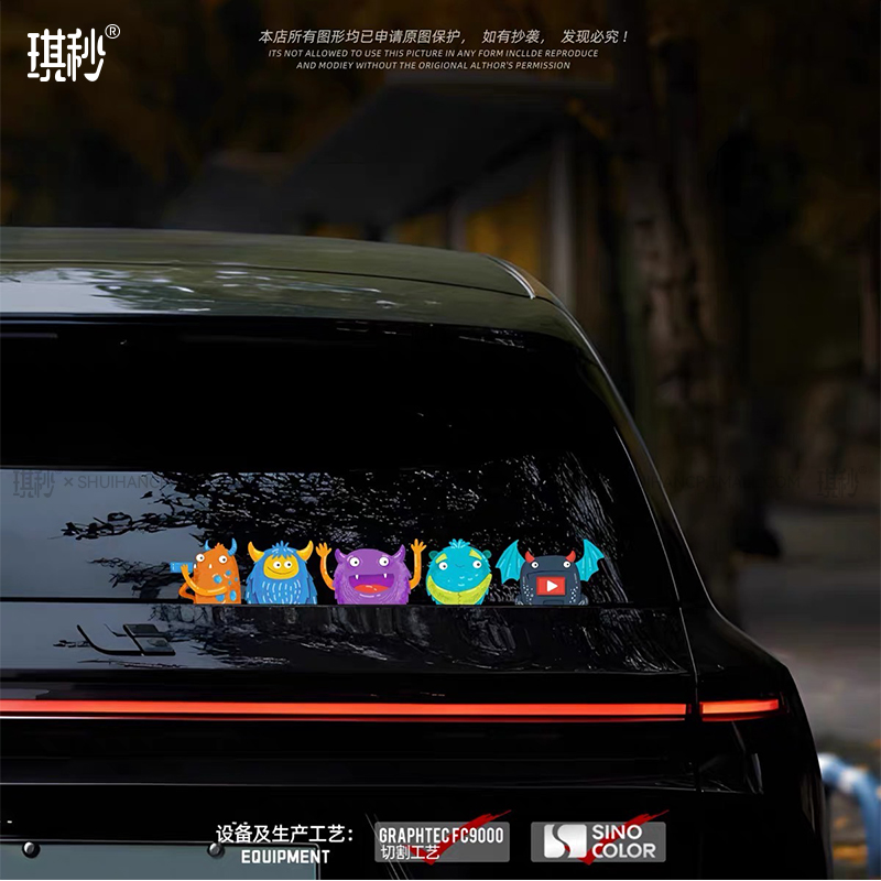 病毒体小怪兽汽车贴纸摩托电动多巴胺玻璃装饰冰箱贴划痕遮挡防水