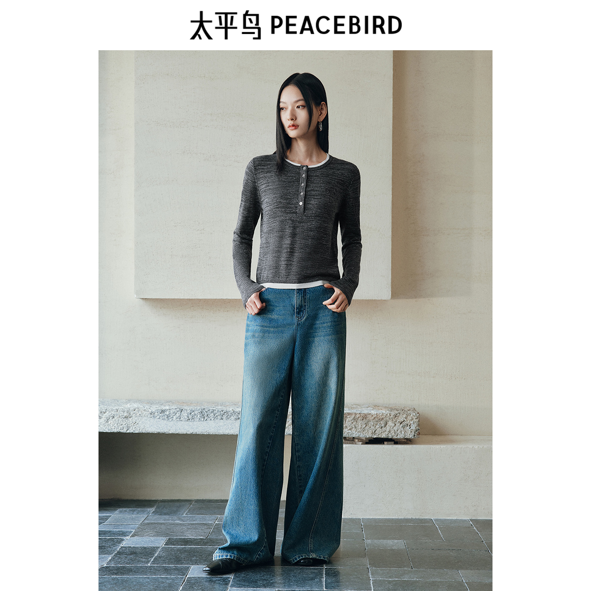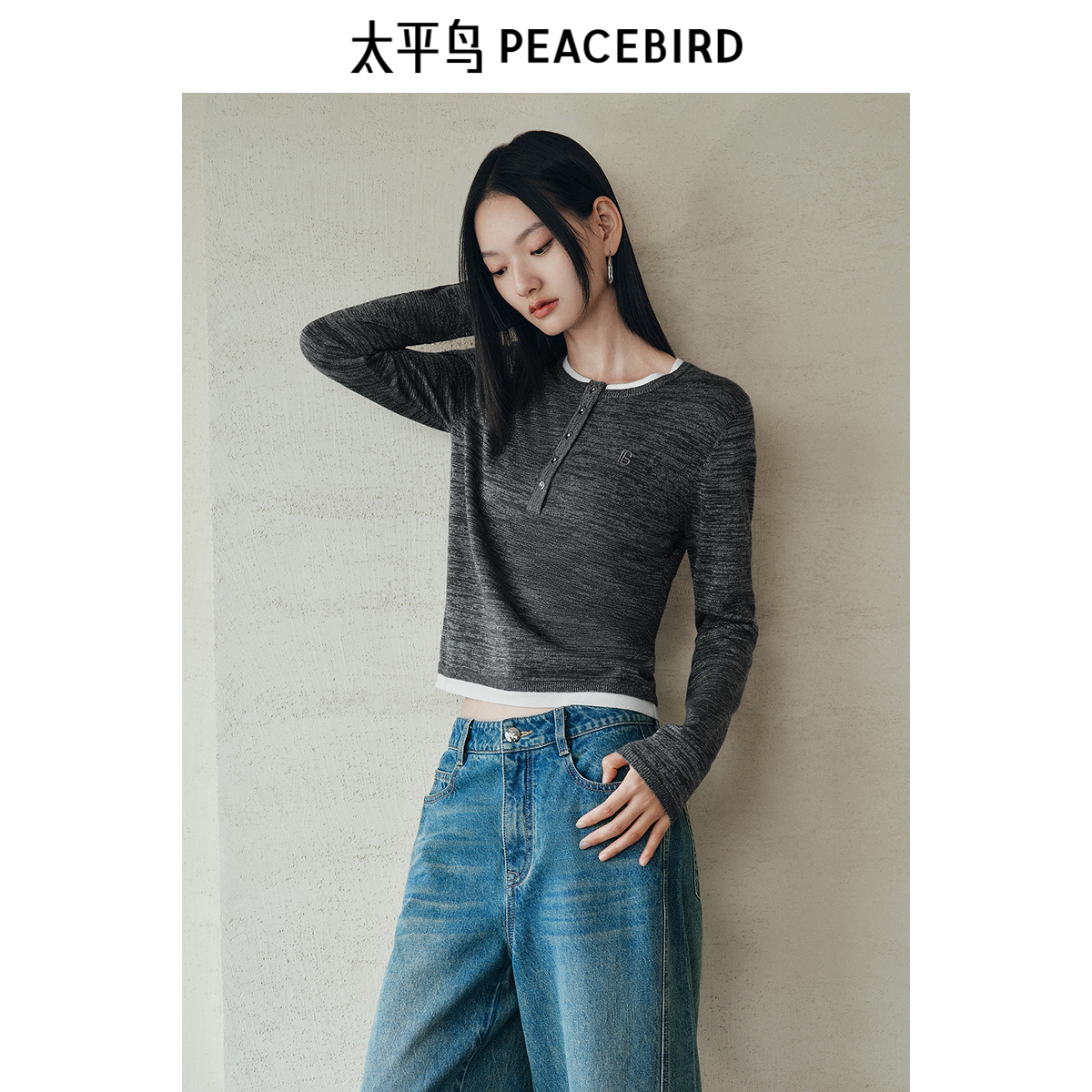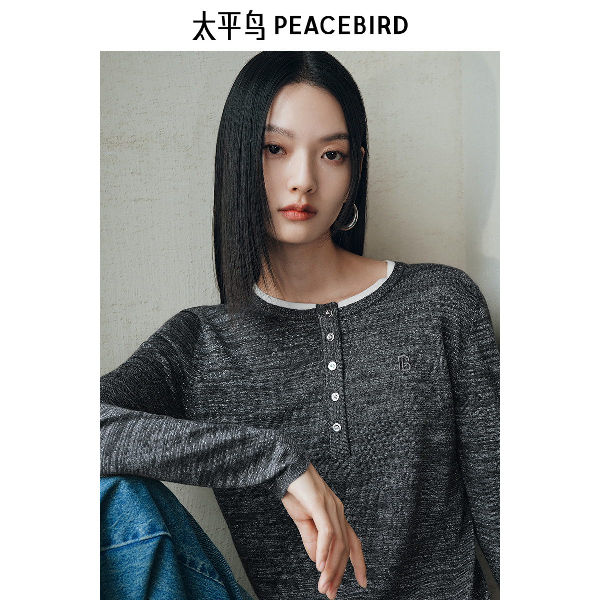 太平鸟女装羊毛混纺软糯针织衫25春季新款撞色假两件修身韩版毛衣