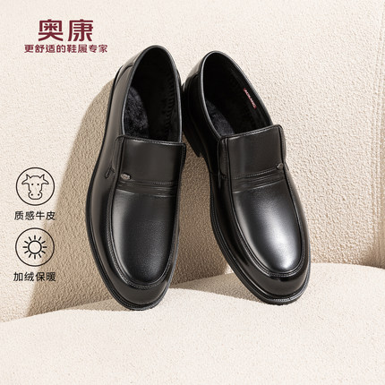 奥康 冬季新款男鞋乐福鞋舒适平底懒人一脚蹬百搭皮鞋爸爸工作鞋