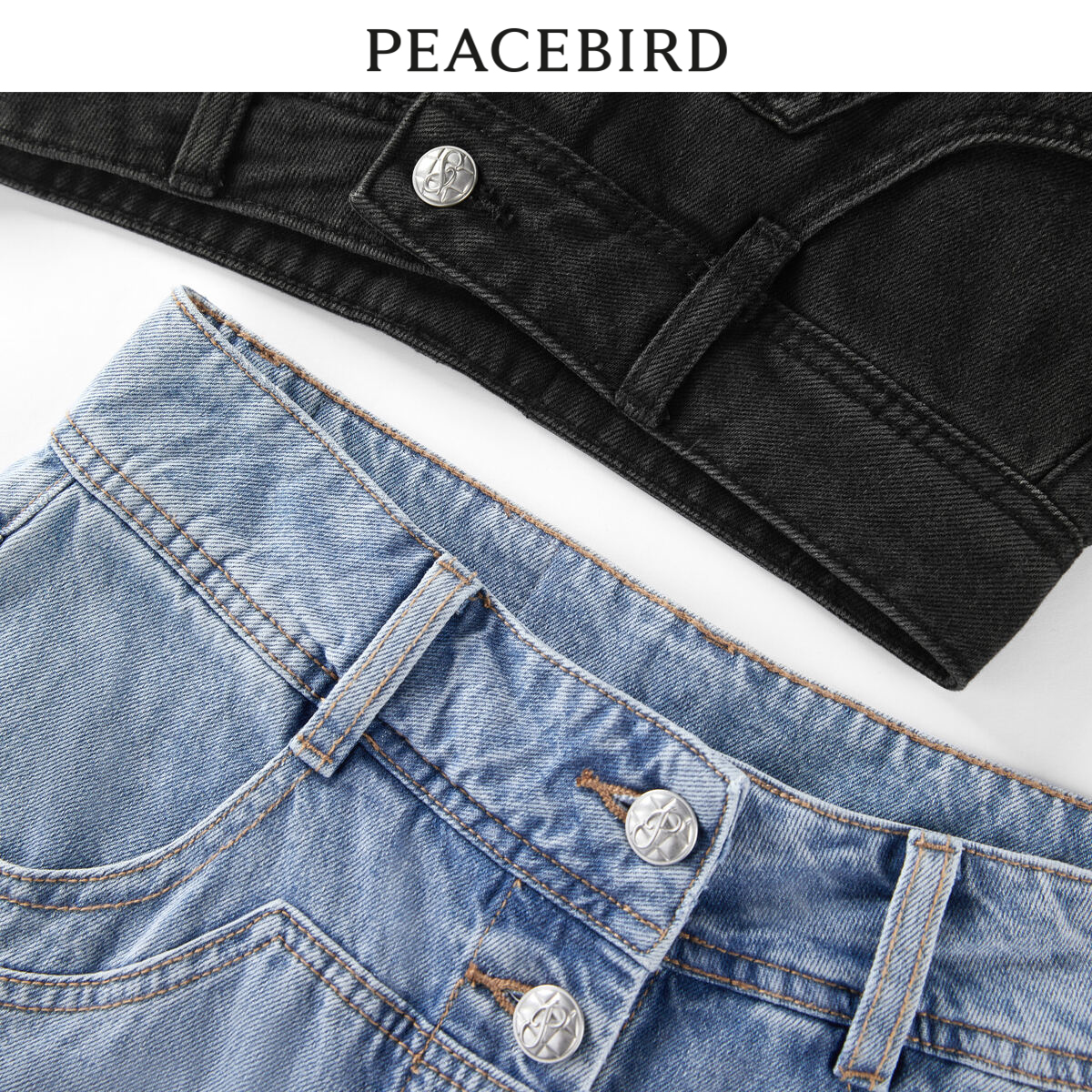 太平鸟女装秋季新款高腰阔腿牛仔裙裤A1HBD2433
