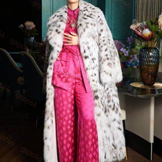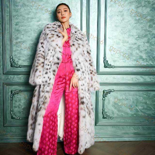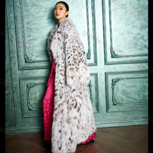 明星网红同款纯白山猫皮草外套美国超长款本色男女情侣款高端大衣