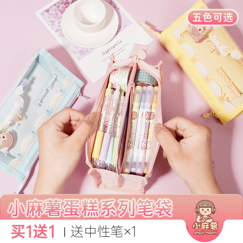 小麻薯笔袋设计感小众文具盒男女孩款女生2025新款文具袋小学生儿童铅笔盒透明大容量高颜值幼儿园简约铅笔袋