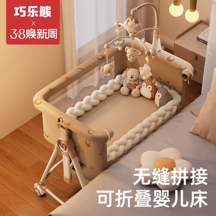 巧乐熊婴儿床可移动便携式摇篮床可折叠多功能bb床新生儿拼接大床