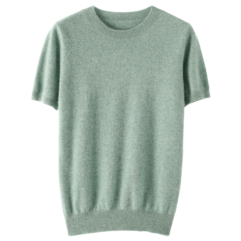 春秋半高领五分袖羊毛针织衫女中袖毛衣打底衫套头半袖外穿薄上衣