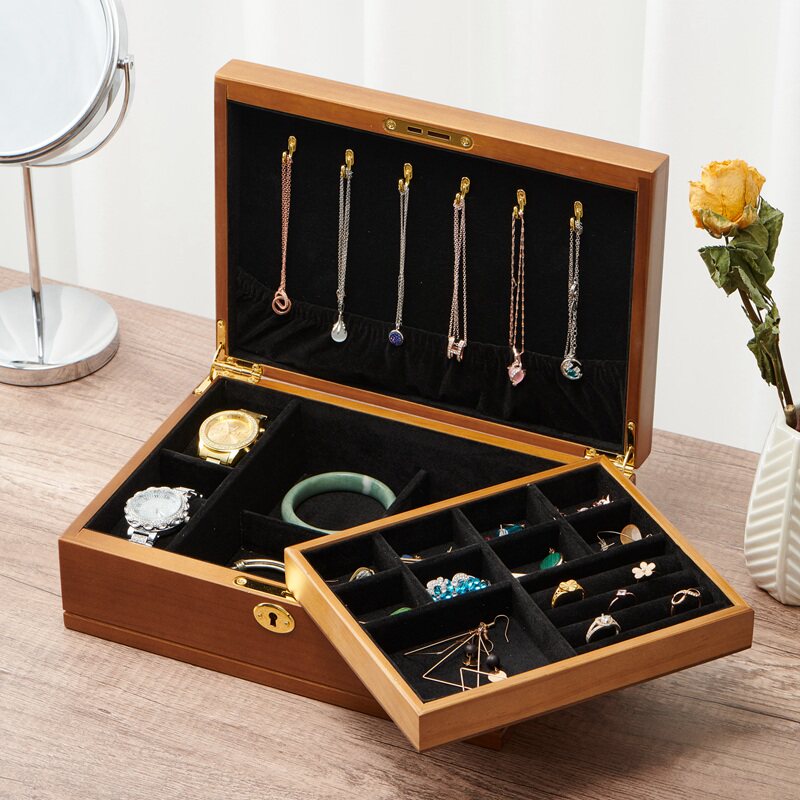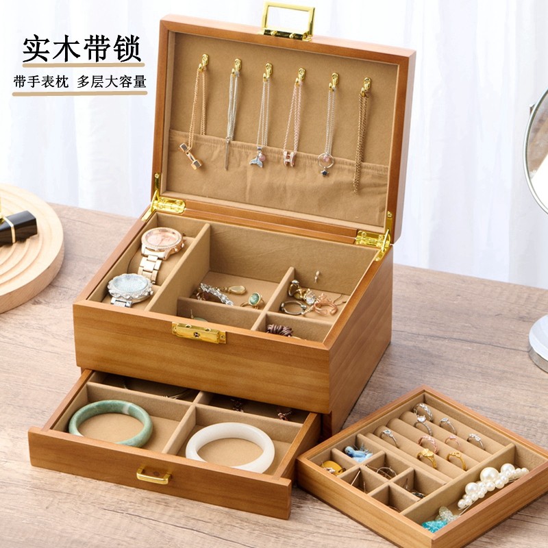 首饰盒实木带锁戒指耳环耳钉项链首饰收纳精致镯子饰品盒珠宝盒子