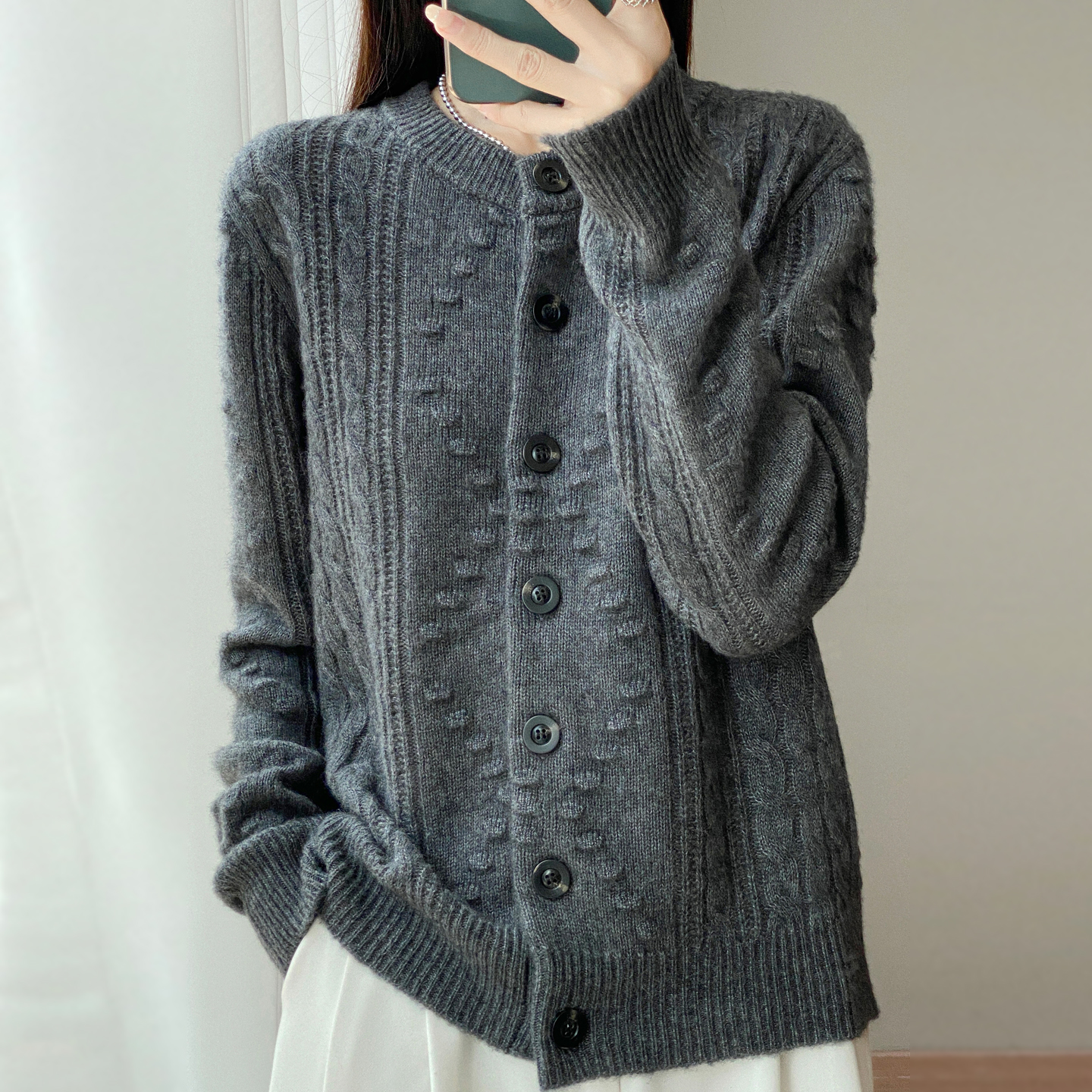 超柔软~双股加厚莱赛尔天丝羊毛针织外套女秋冬新款宽松开衫 毛衣