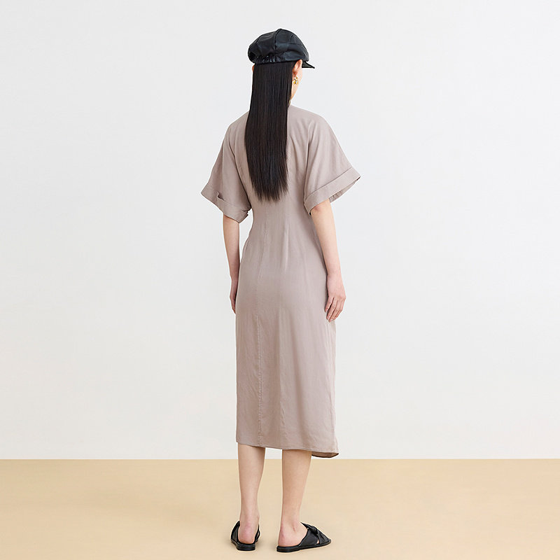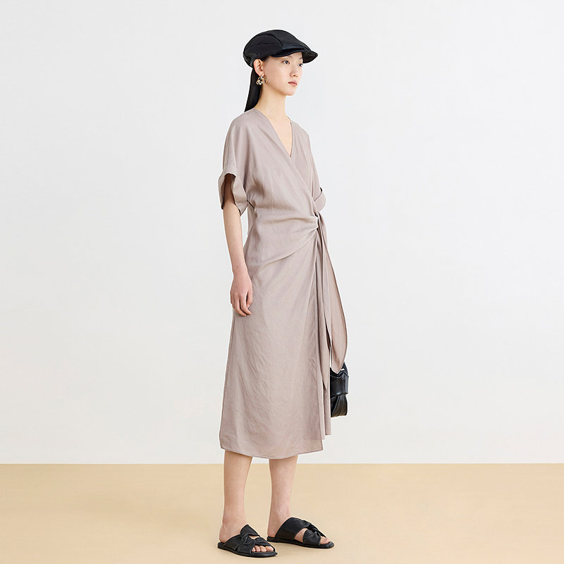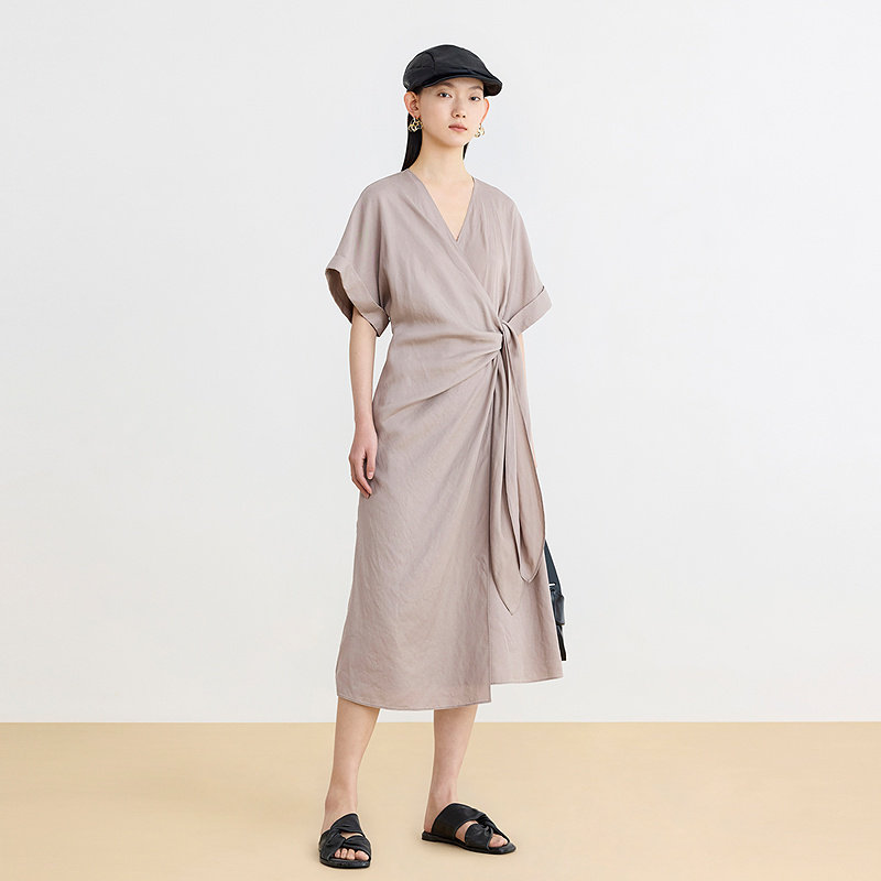 AUM噢姆夏季新中式V领绑带收腰设计感轻礼连衣裙长裙