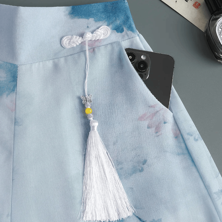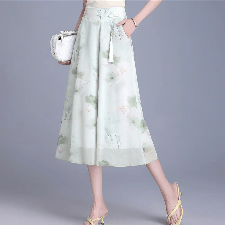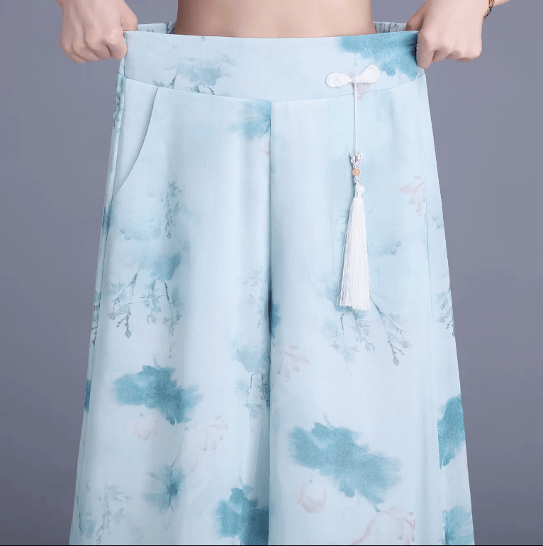 国风七分裤女夏季薄款天丝麻裤子清新印花裙裤高腰宽松显瘦阔腿裤