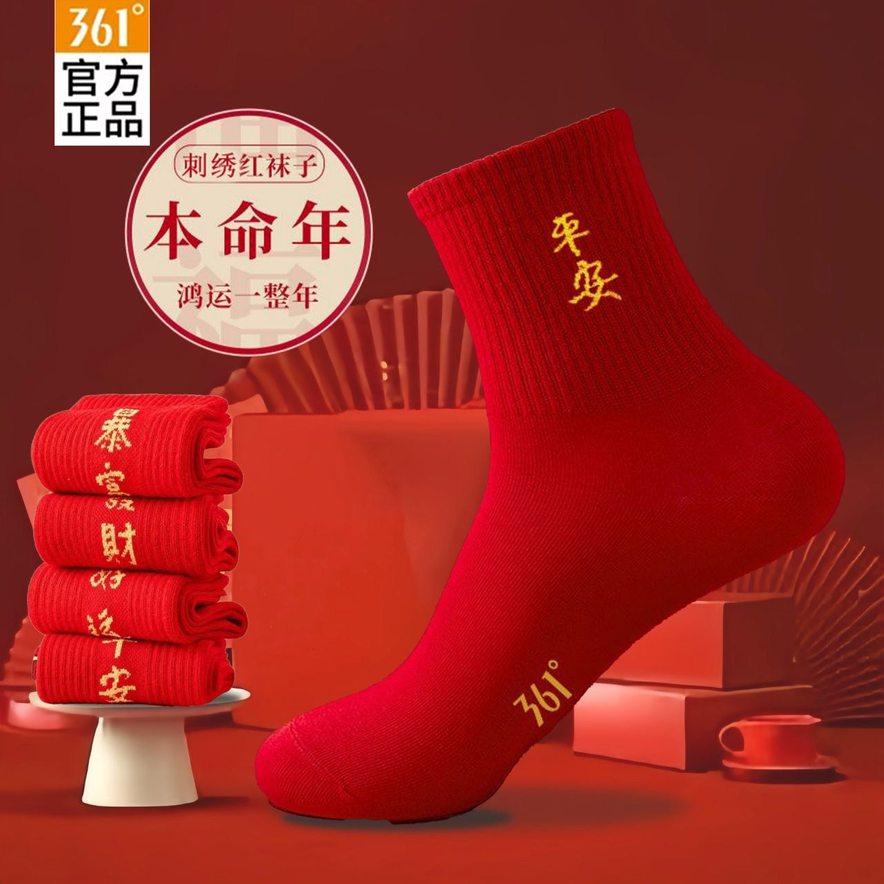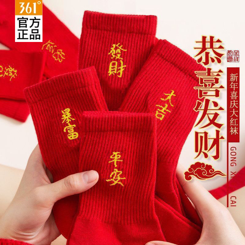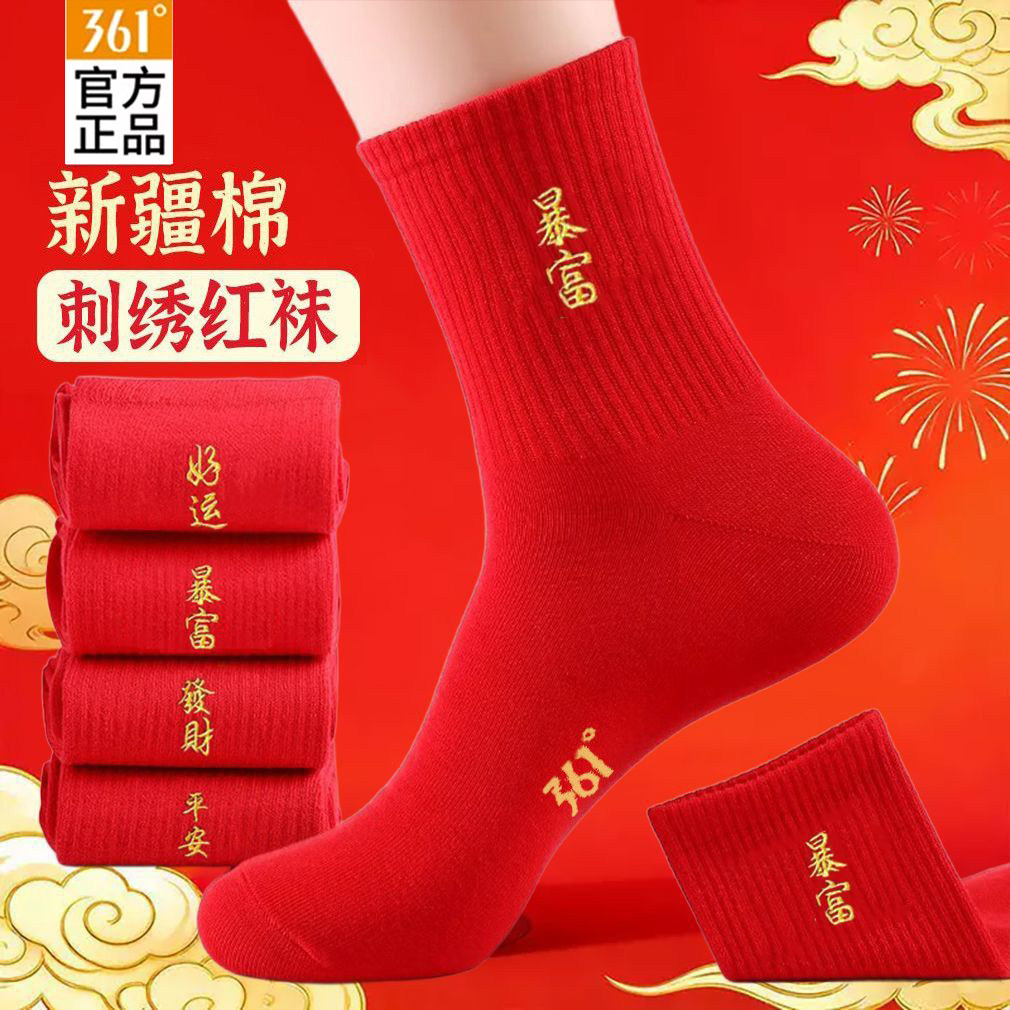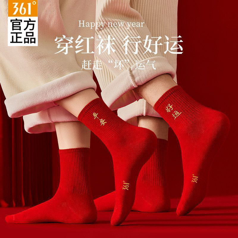 361°红袜子男士2026年新款马年女生袜子休闲棉袜新年礼物长筒袜