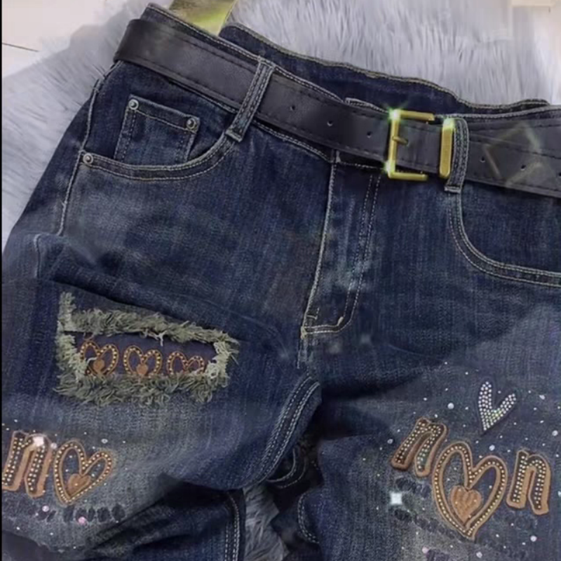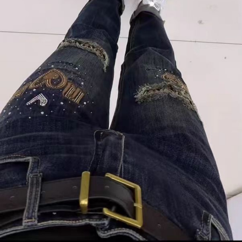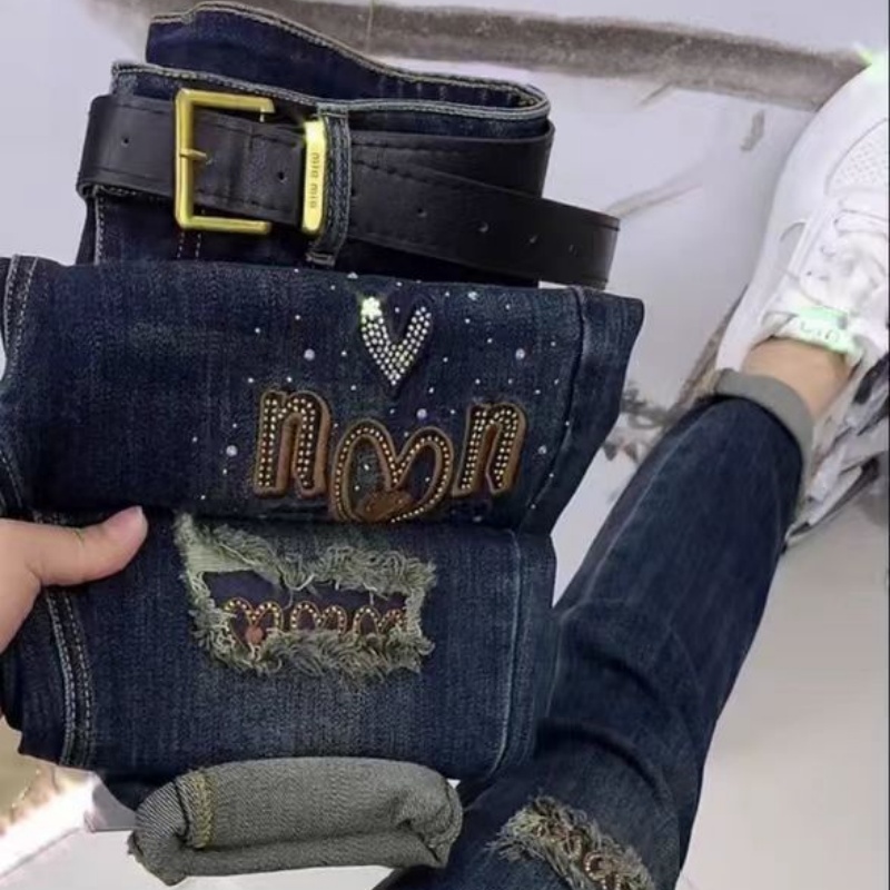 2025欧货新款弹力修身牛仔裤女秋季九分刺绣时尚显瘦小脚哈伦裤潮