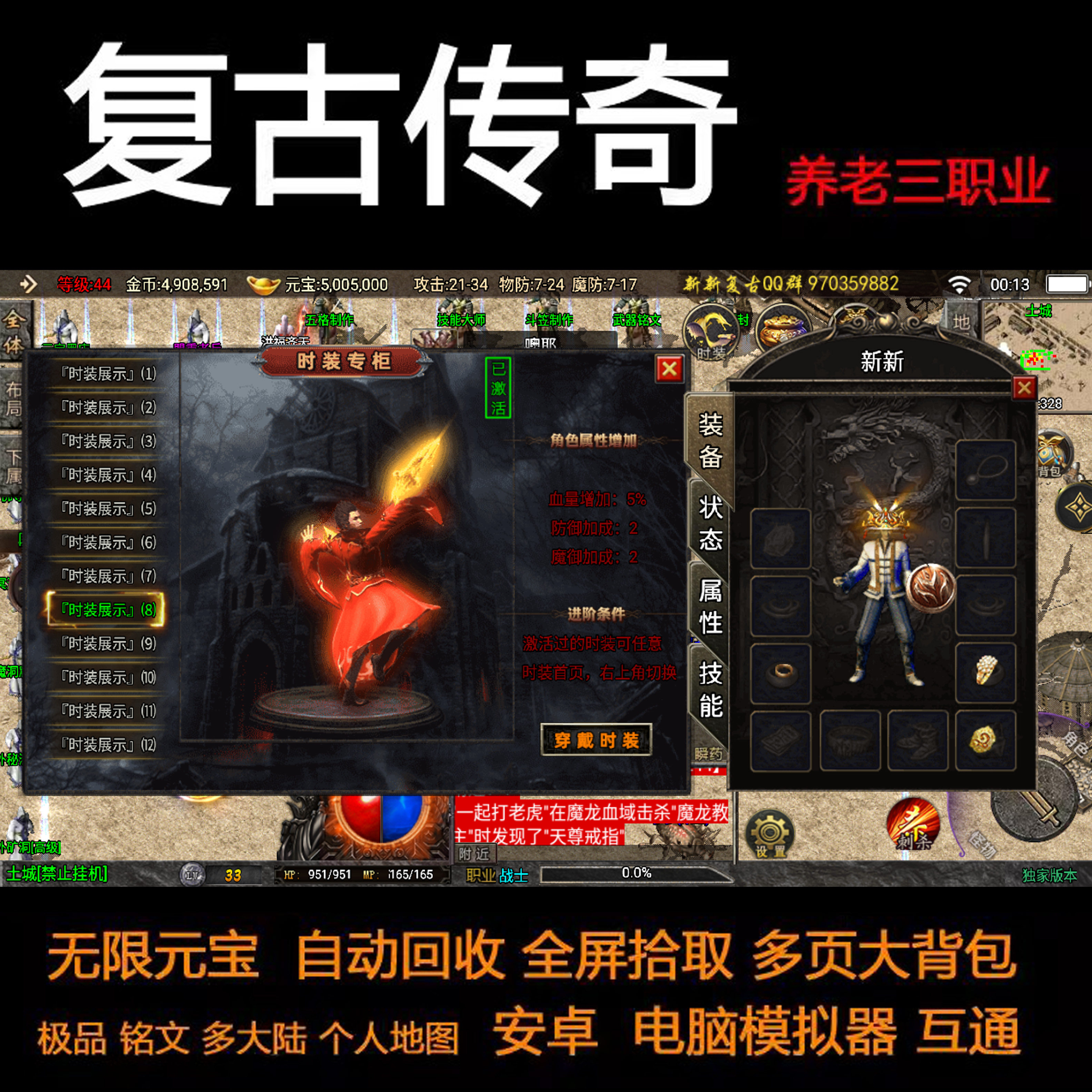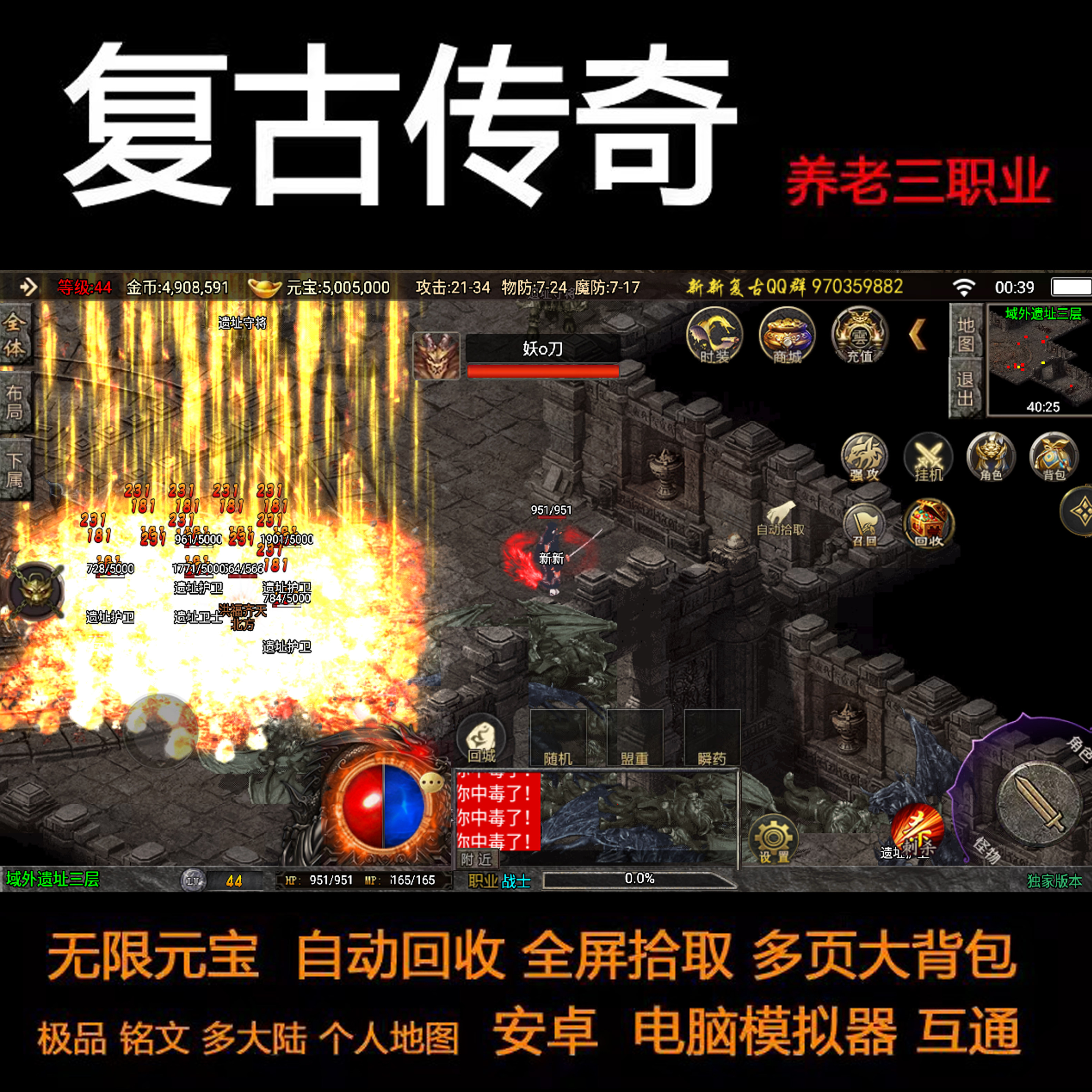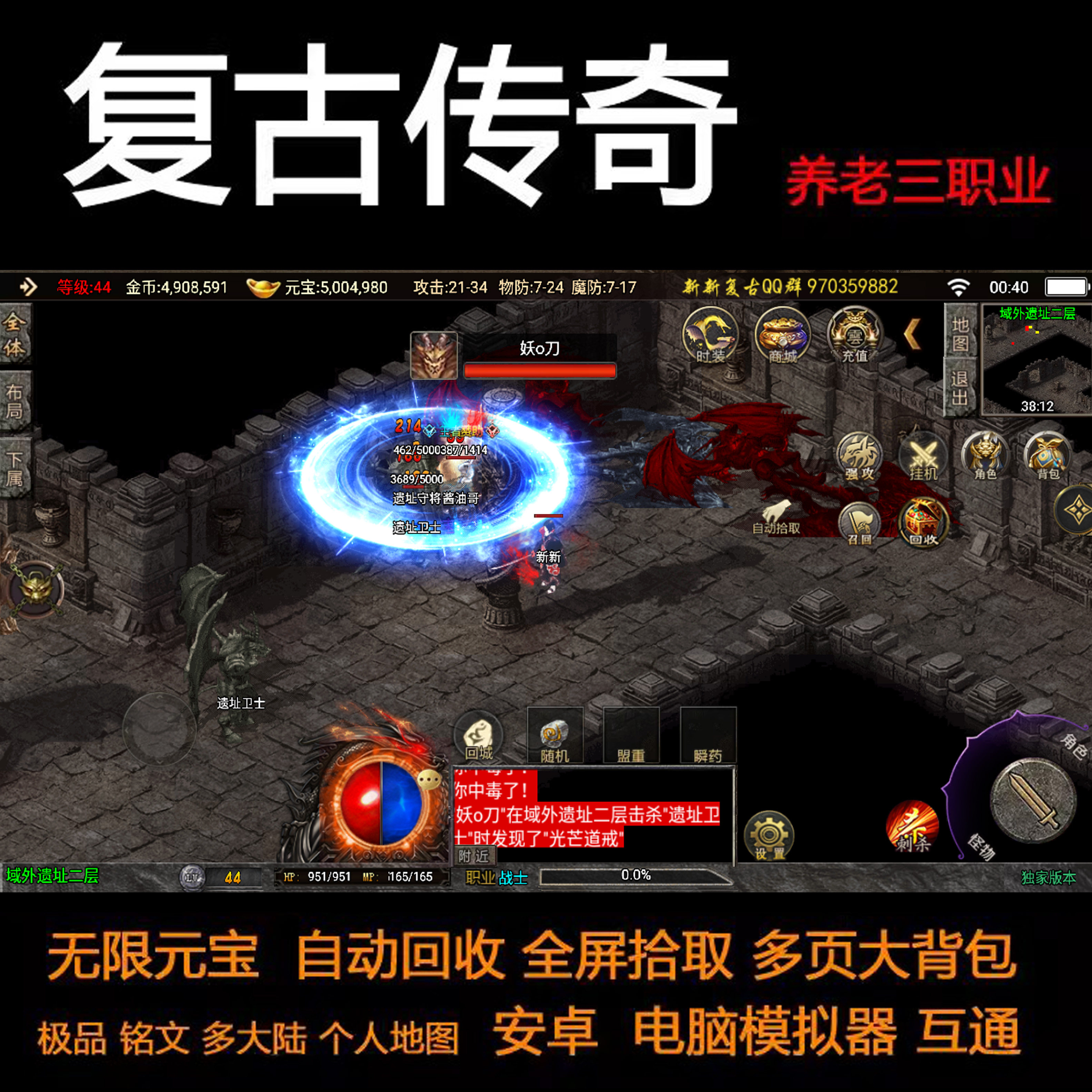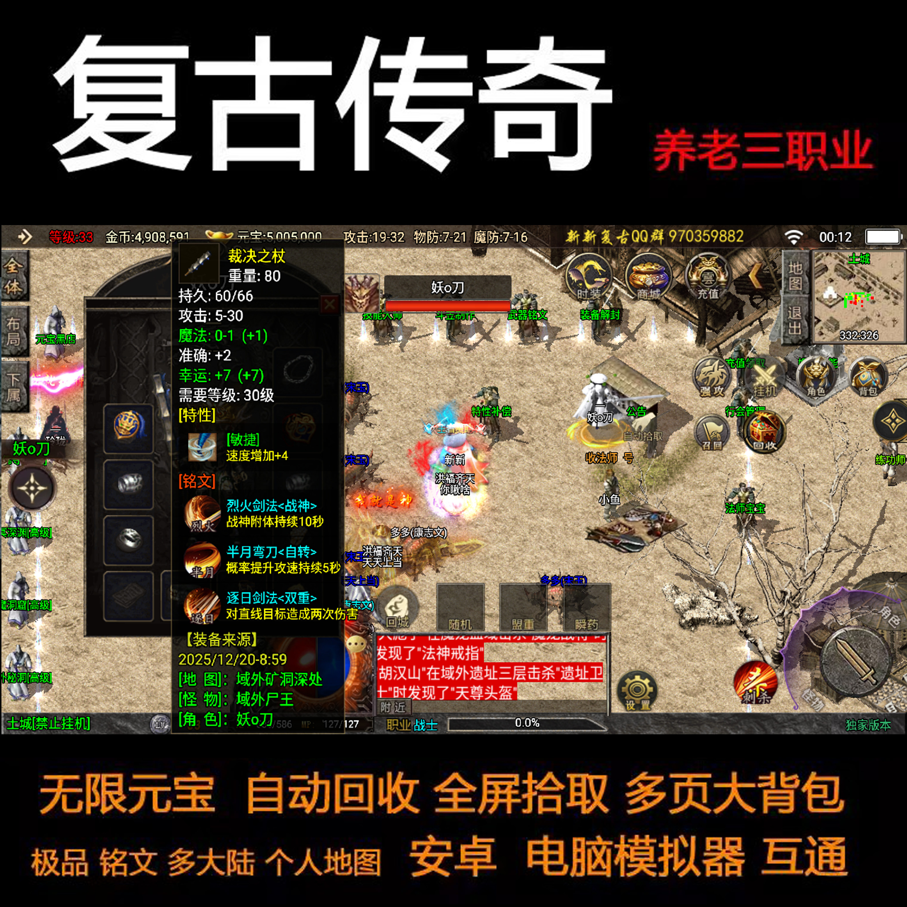 传奇手游三职业铭文特性个人地图养老无限元宝安卓手机电脑非单机