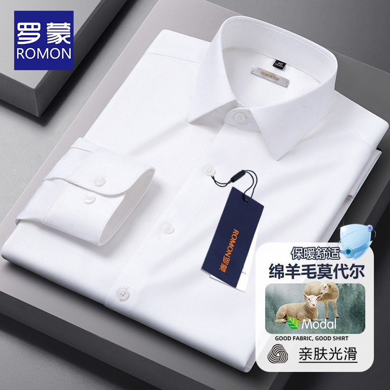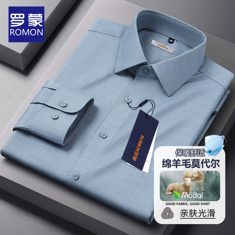 【含绵羊毛+莫代尔】罗蒙新款保暖衬衫男士长袖秋冬抗皱商务衬衣