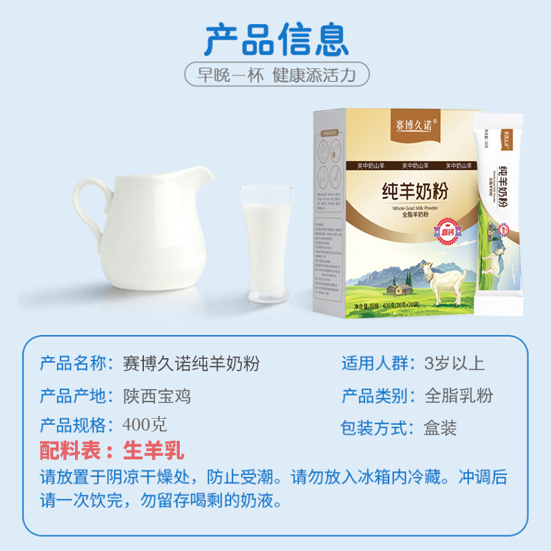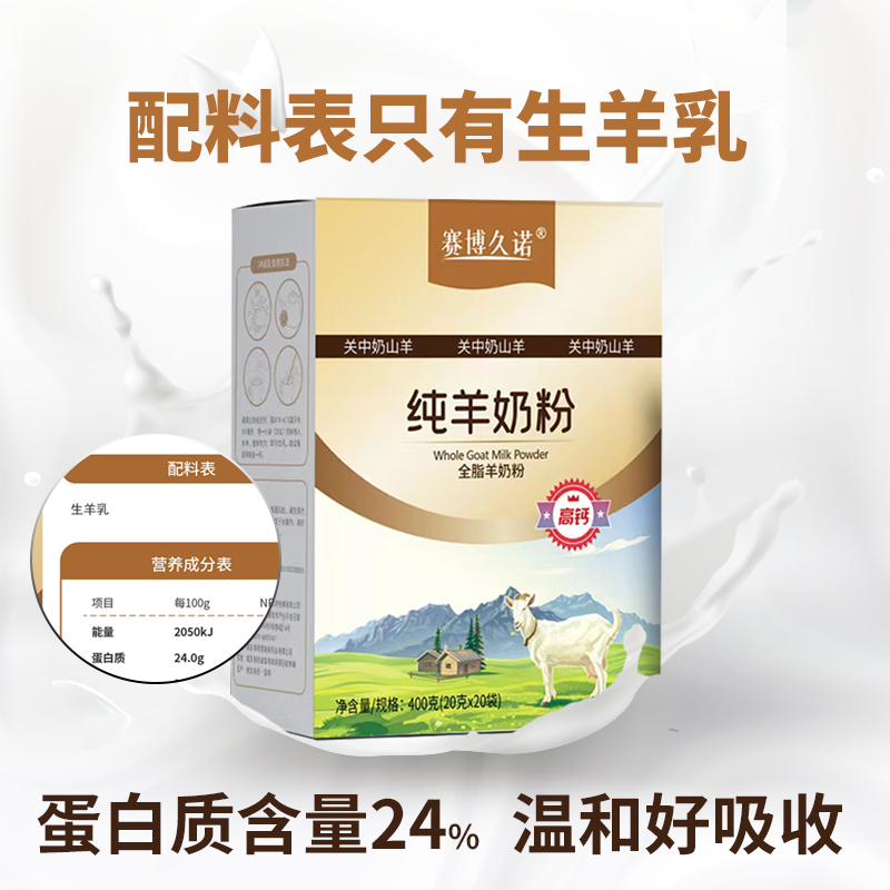 赛博久诺正宗全脂纯羊奶粉高钙关中奶山羊男女学生中老年早餐奶粉