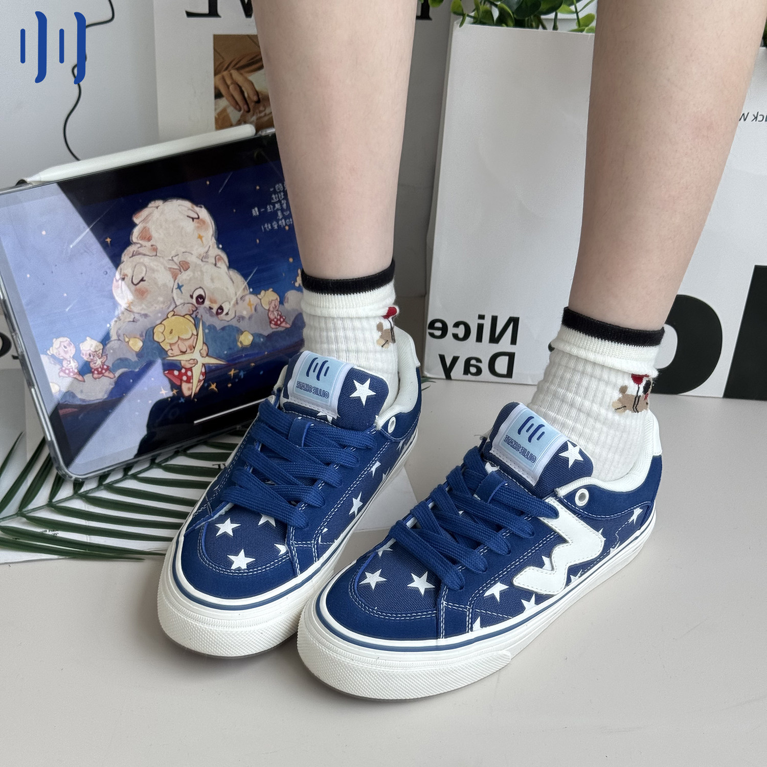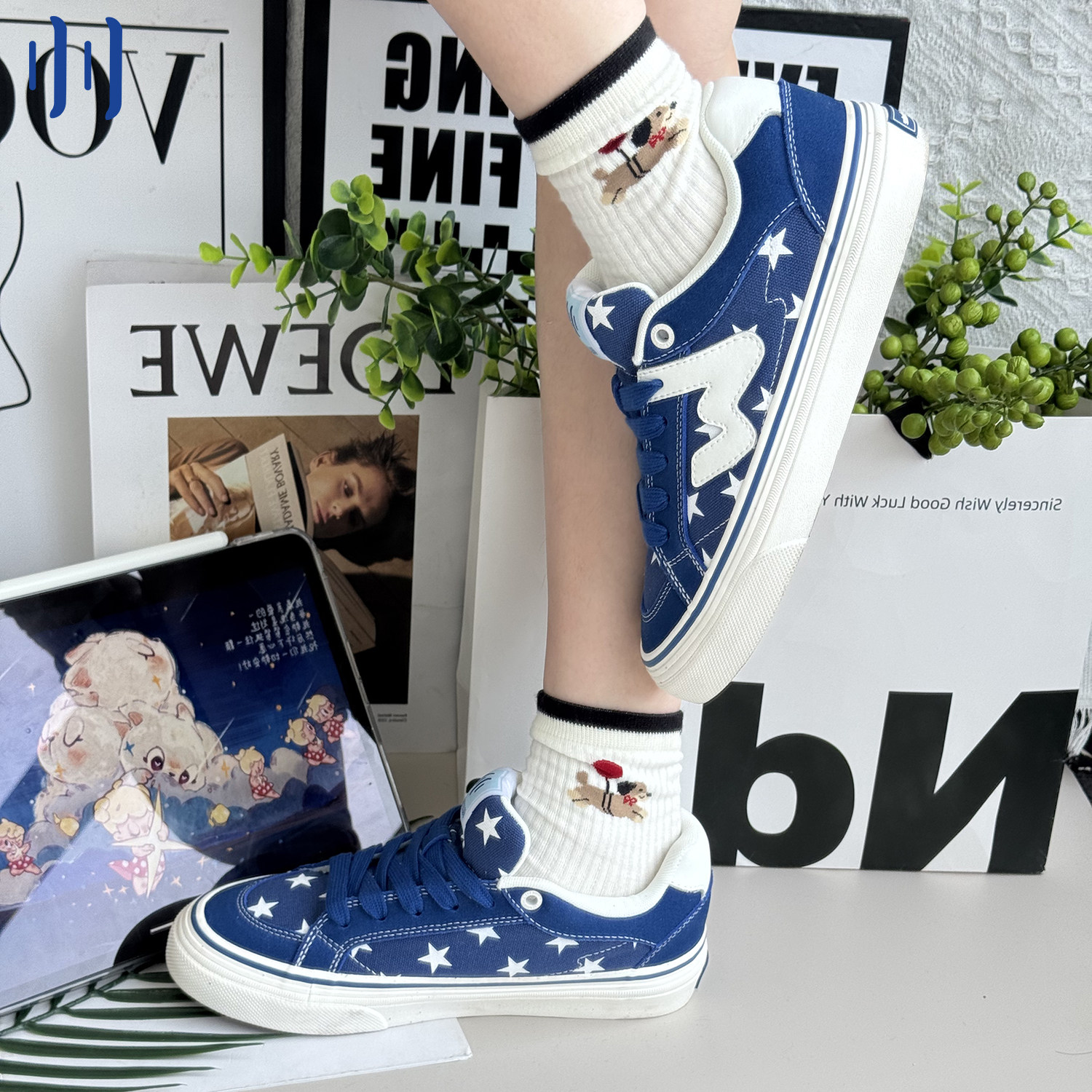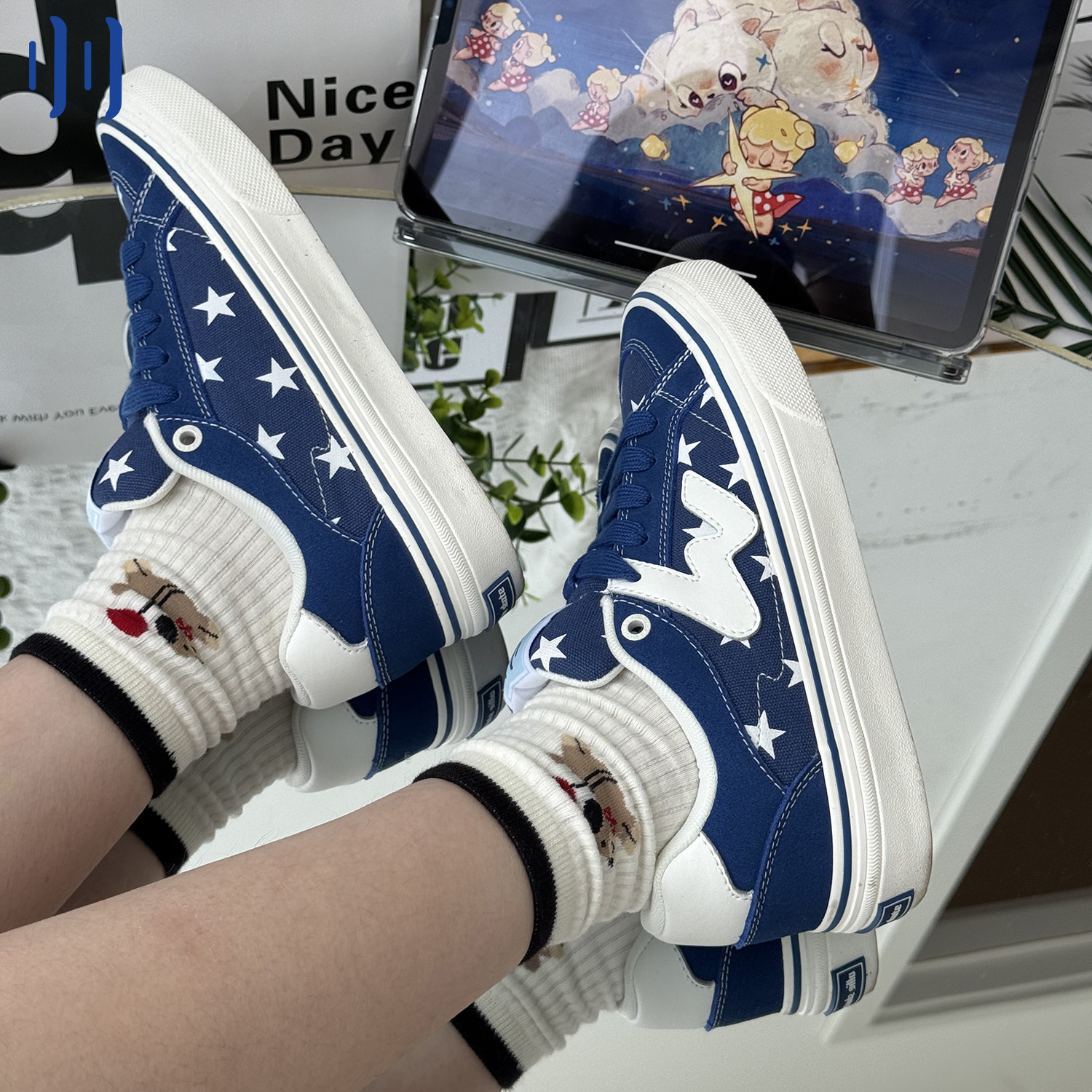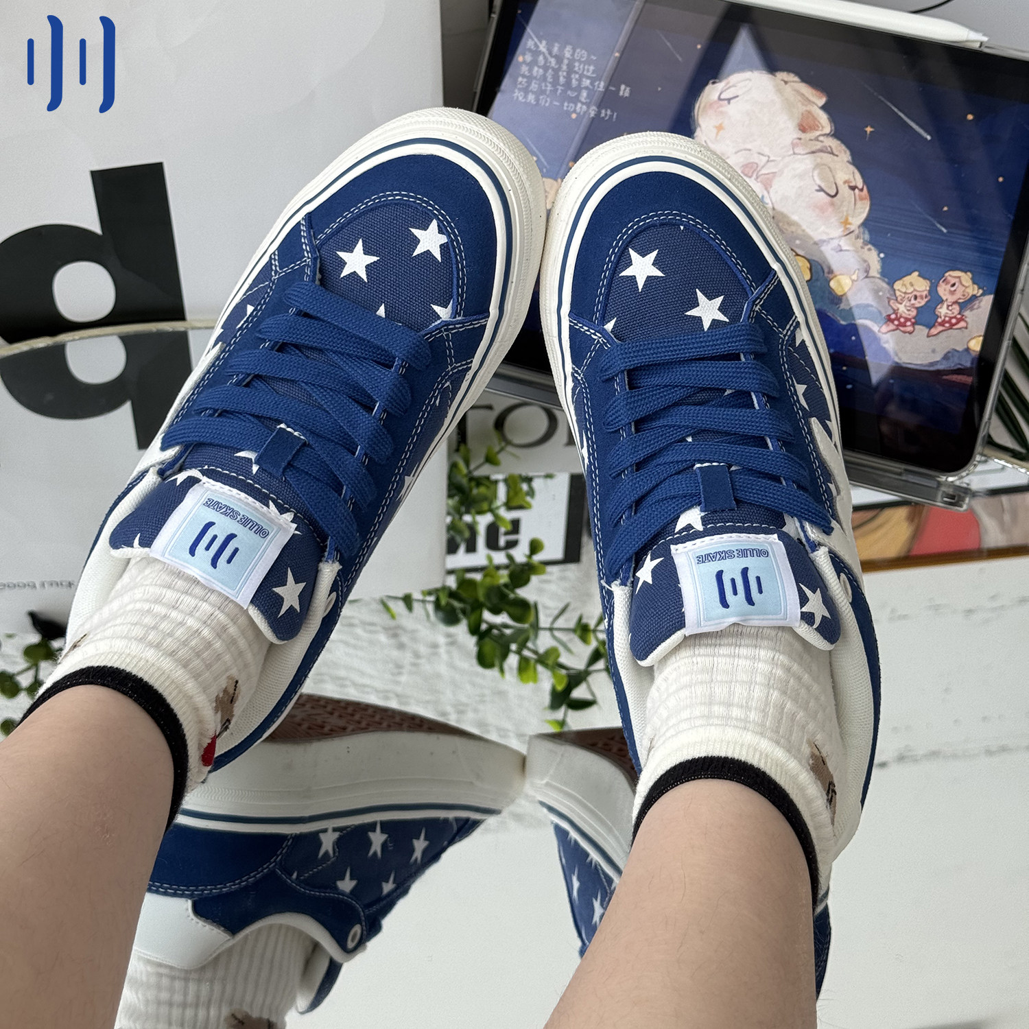 顽刻ollieskate蓝白星星配色秋季校园风W系列低帮男女国潮滑板鞋