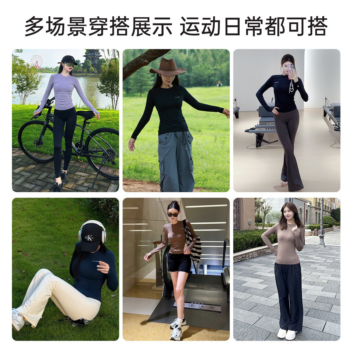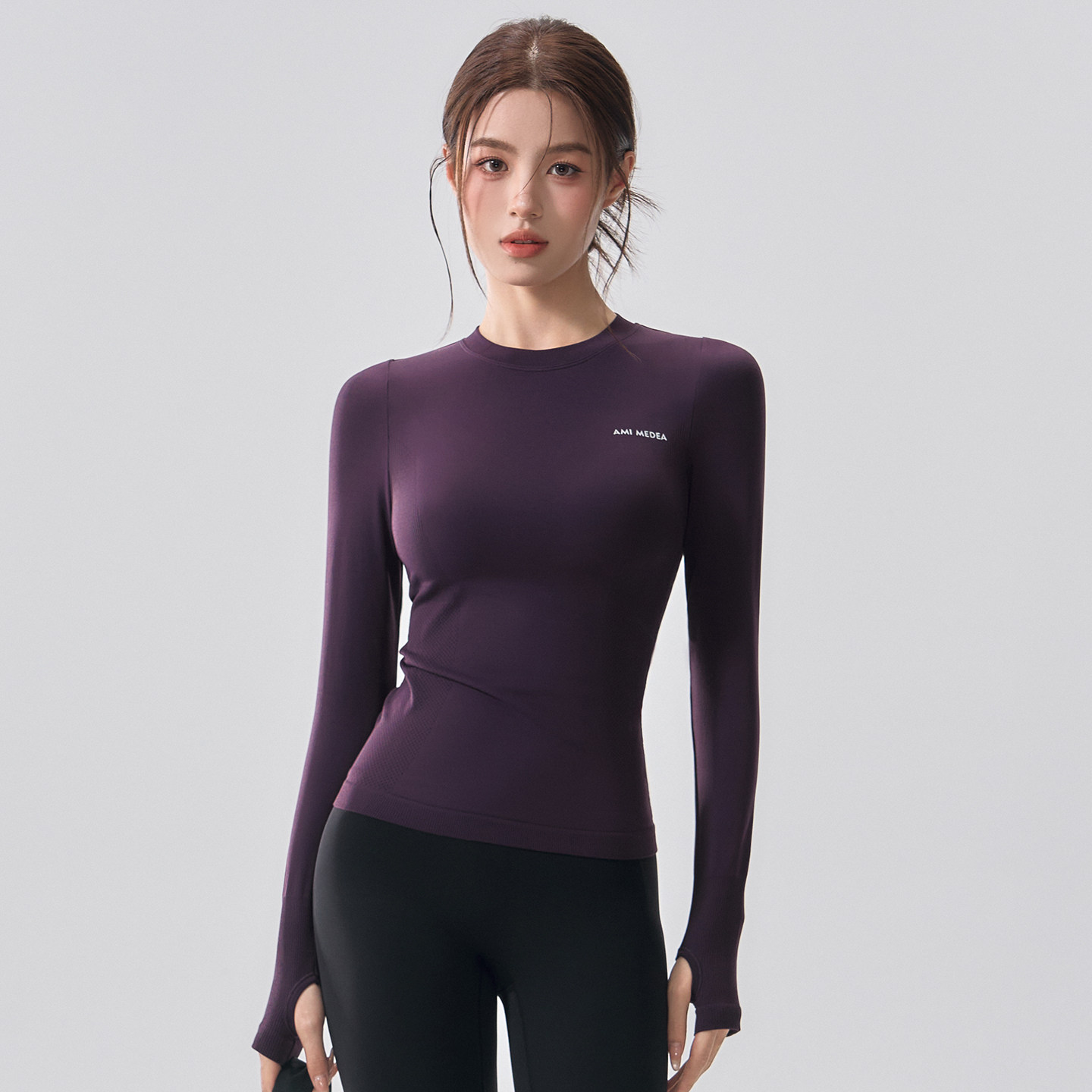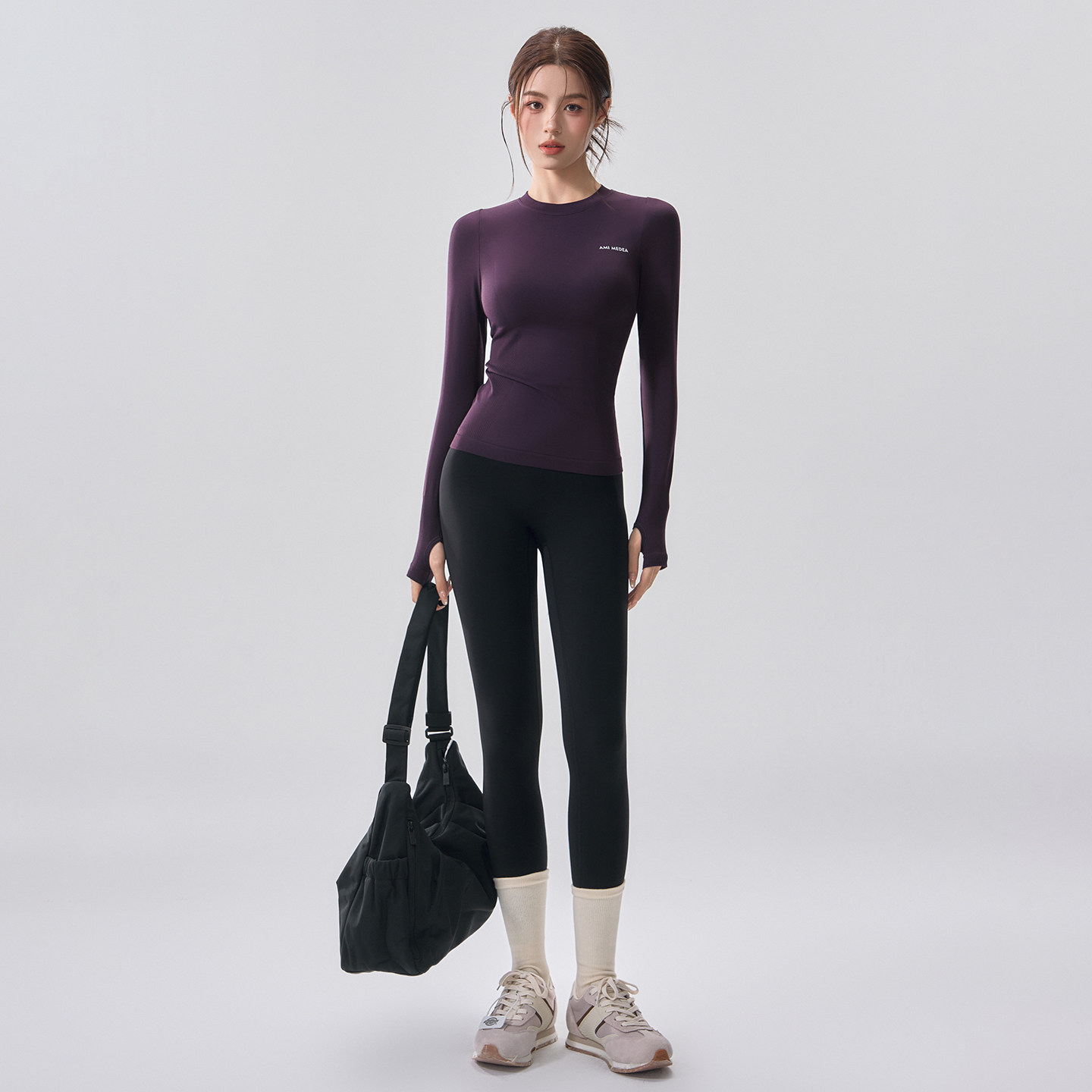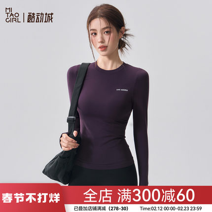 Mitaogirl长袖瑜伽服紫色健身服女普拉提训练服紧身运动上衣秋冬
