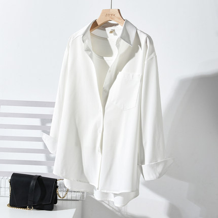 白色衬衫女2025春秋新款大码宽松oversize风衬衣外套免烫抗皱上衣