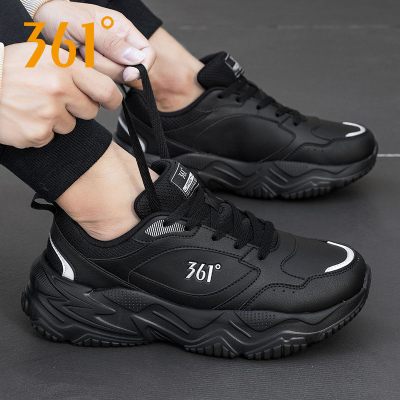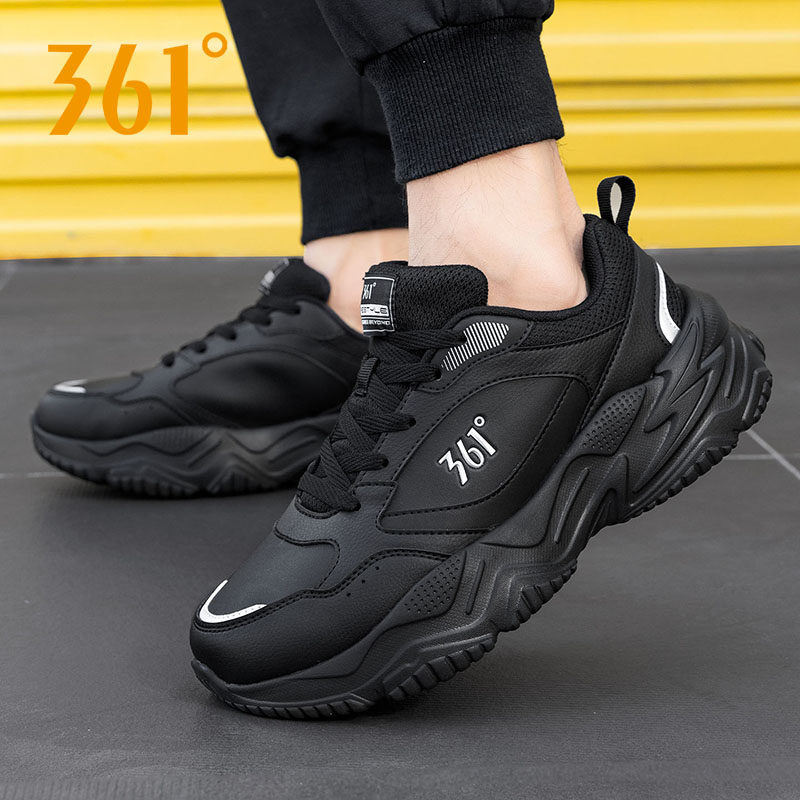 361男鞋皮面跑步鞋冬季2025新款厚底老爹鞋黑色防水休闲运动鞋男