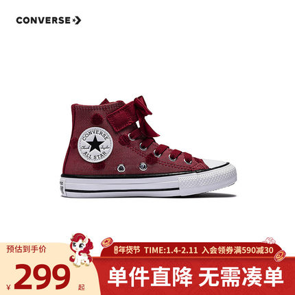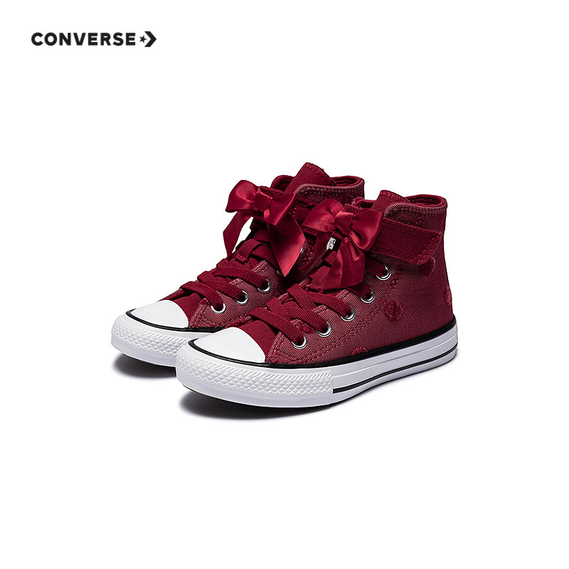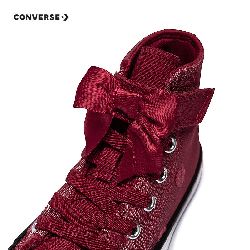 匡威童装女童帆布鞋冬季新款红色复古优雅高帮休闲鞋魔术贴