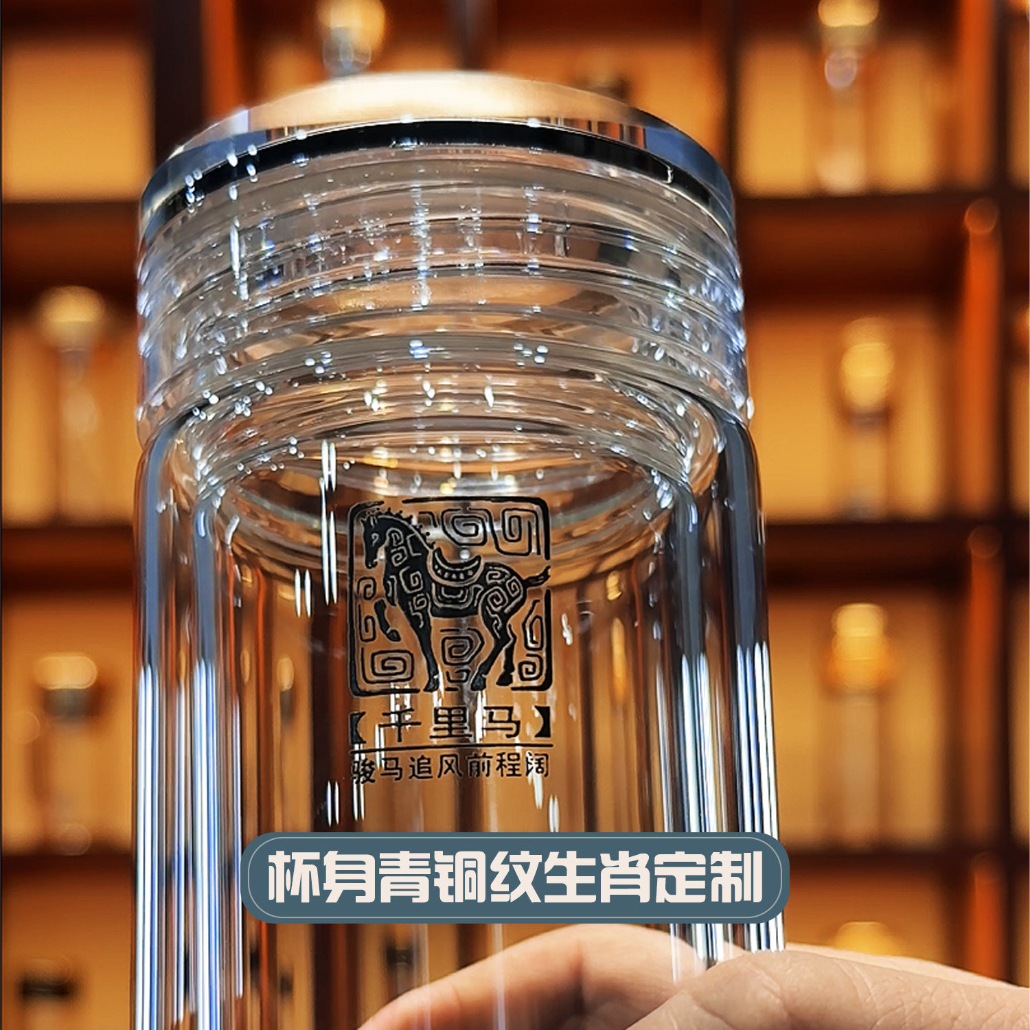 水晶鹅蛋杯双层加厚玻璃杯便携车载茶水分离泡茶杯子定制刻字生肖