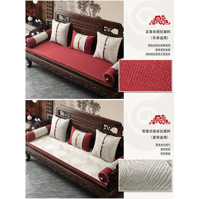 新中式实木沙发垫定制罗汉床座椅垫四季双面两用冰丝红木海绵坐垫