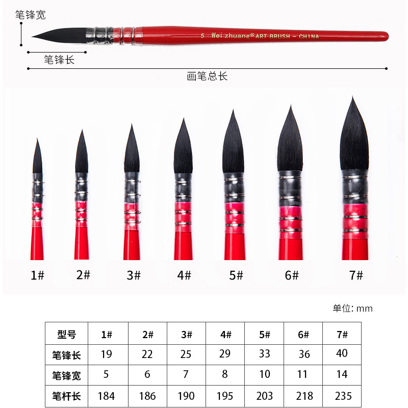 红胖子水彩笔学生绘画动物毛仿松鼠毛美术生专用圆头尖头拖把画笔