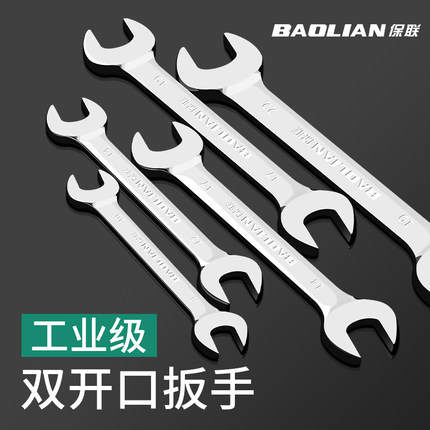 保联双头开口扳手亮面呆头小板手工具套装家用8-10叉子插口小帮手