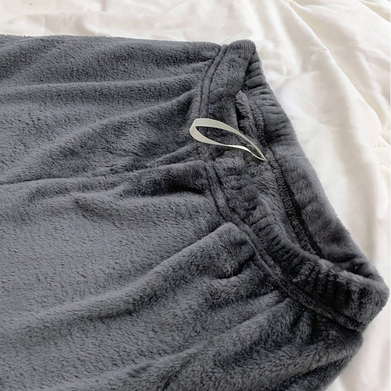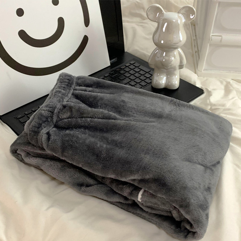 冬季情侣法兰绒纯色青中老年睡裤
