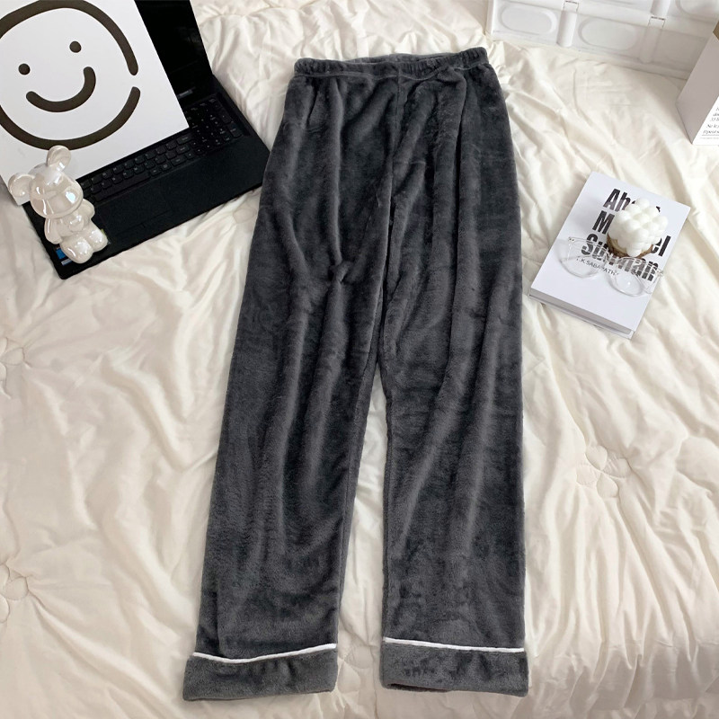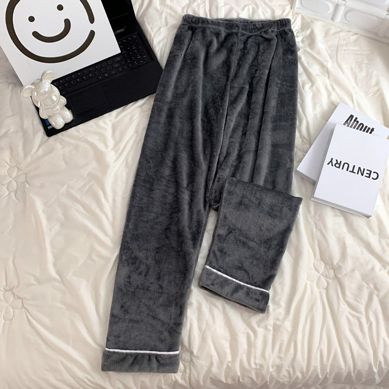 冬季情侣法兰绒纯色睡裤休闲男女春秋青中老年家居长裤子宽松大码