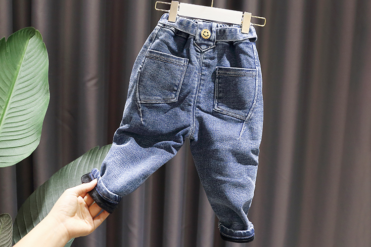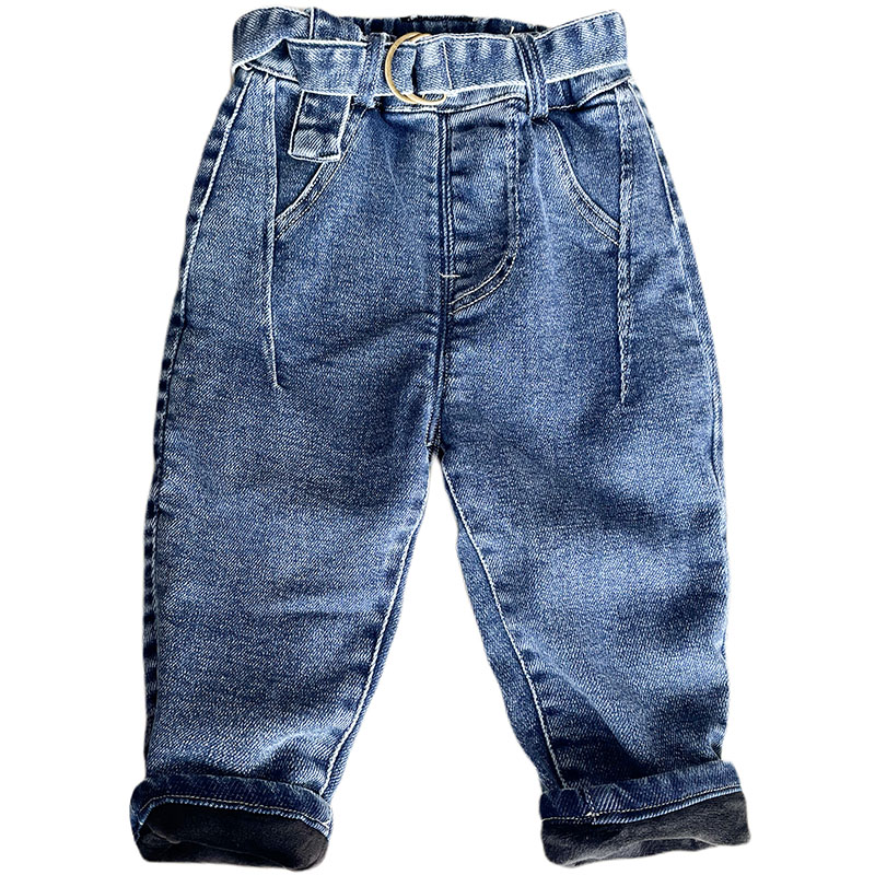 1-3岁女宝宝加绒加厚牛仔裤女童冬季韩版宽松2女婴儿洋气腰带裤子