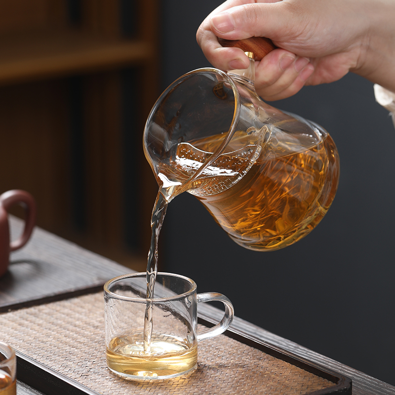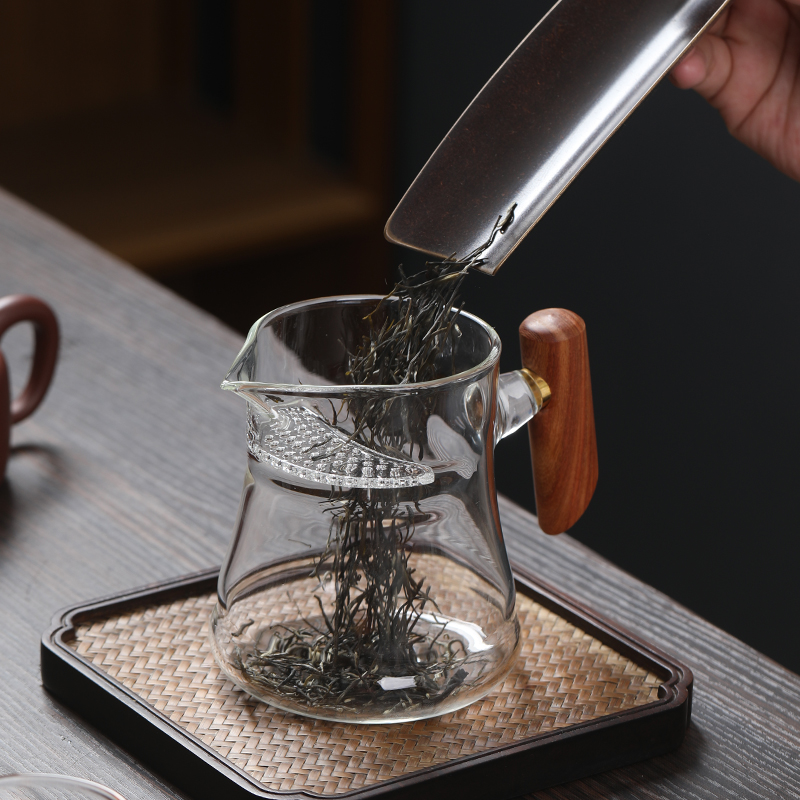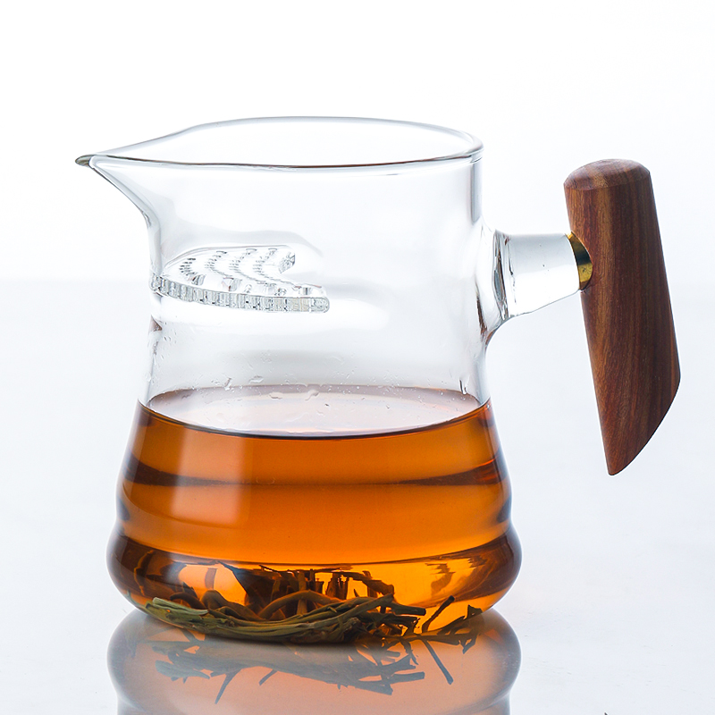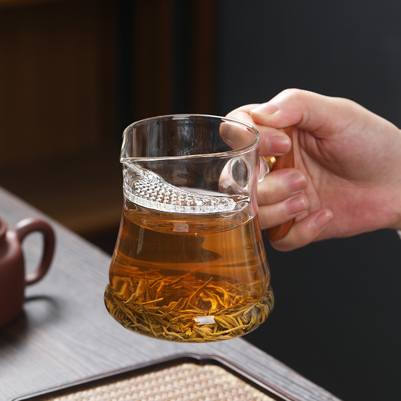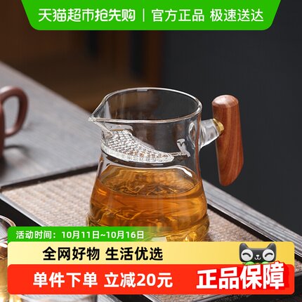 苏氏陶瓷 玻璃月牙木把公道杯带茶滤家用加厚分离器