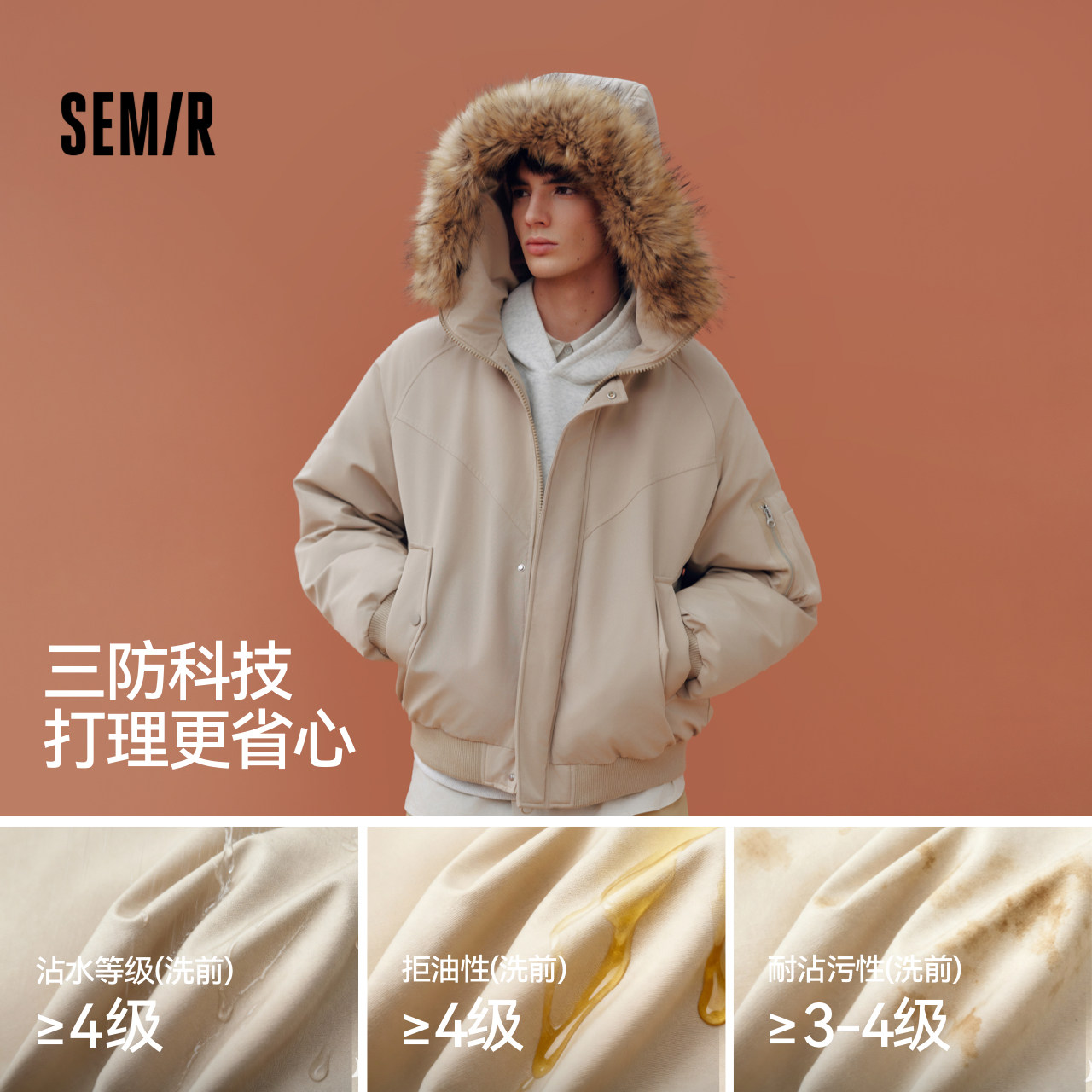 森马羽绒服男冬80绒子三防飞行员外套2025新款可拆卸毛领连帽上衣