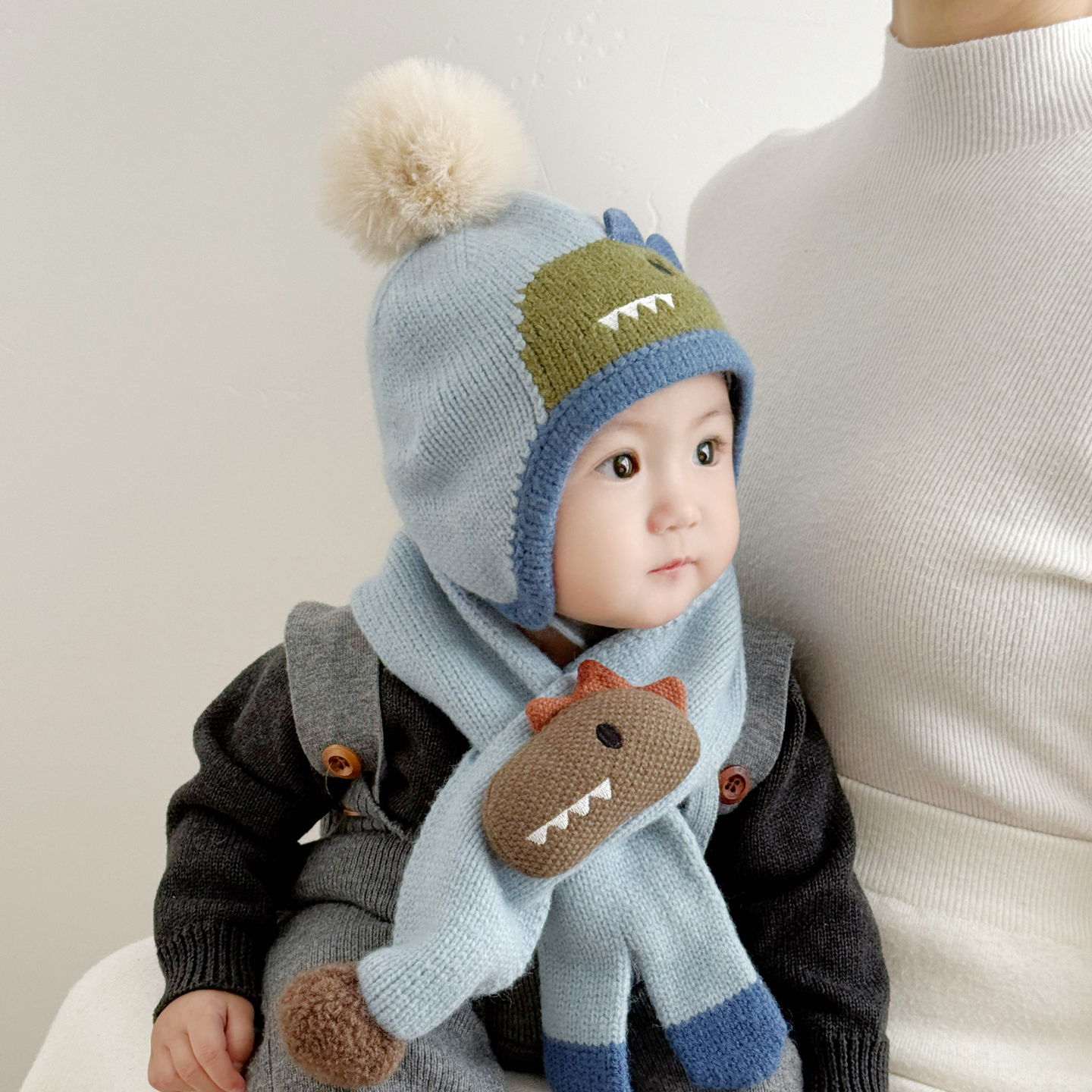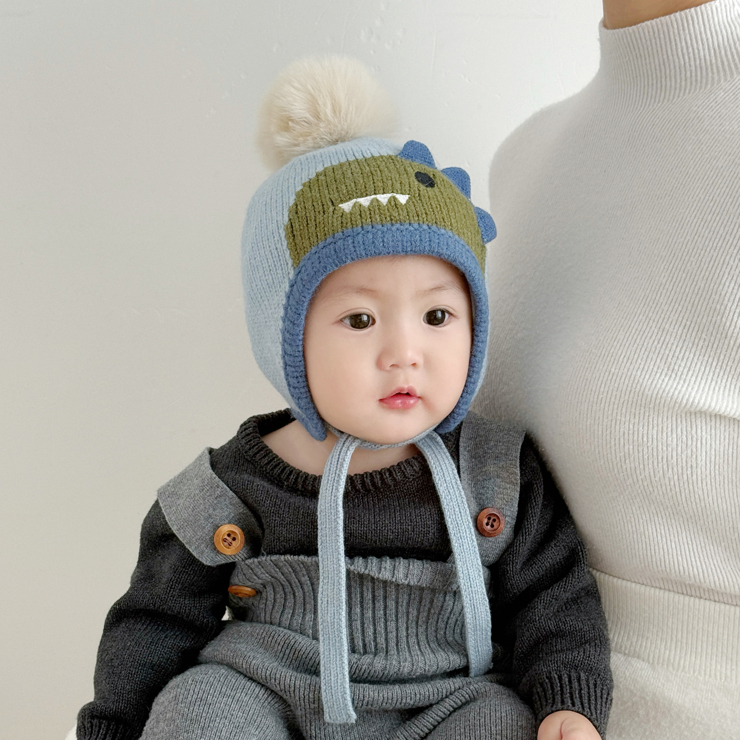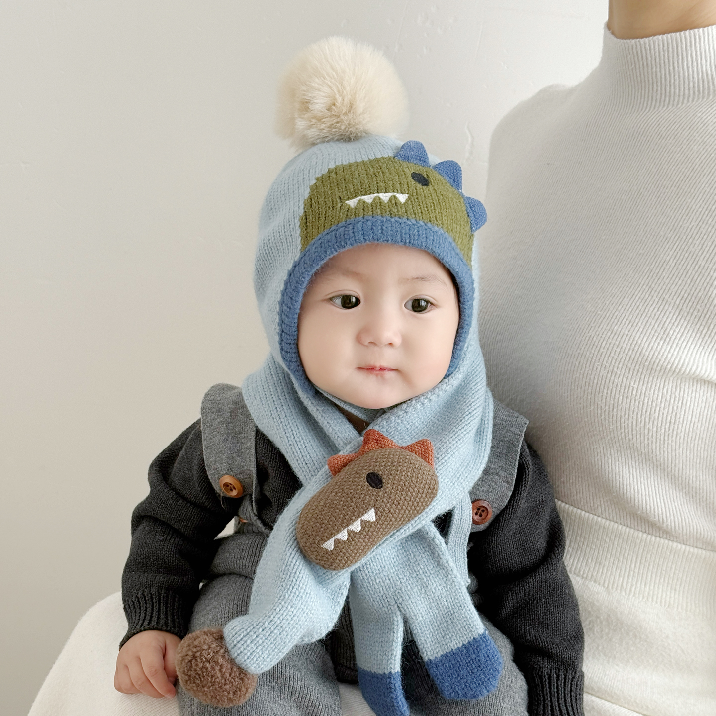彼彼熊毛线帽针织帽小恐龙萌趣冬