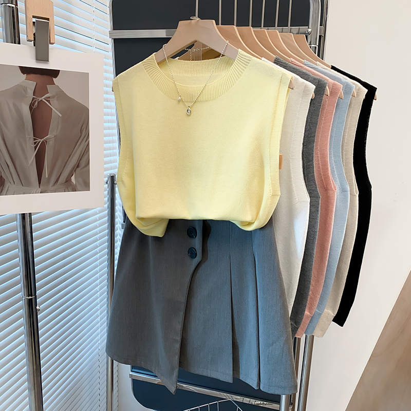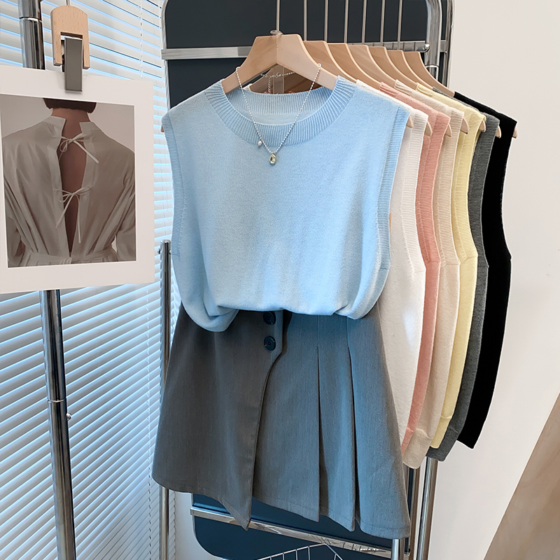 细针圆领针织衫背心女2025夏装新款内搭上衣外穿薄款无袖t恤衫潮