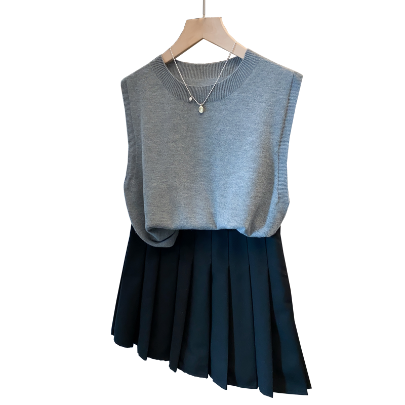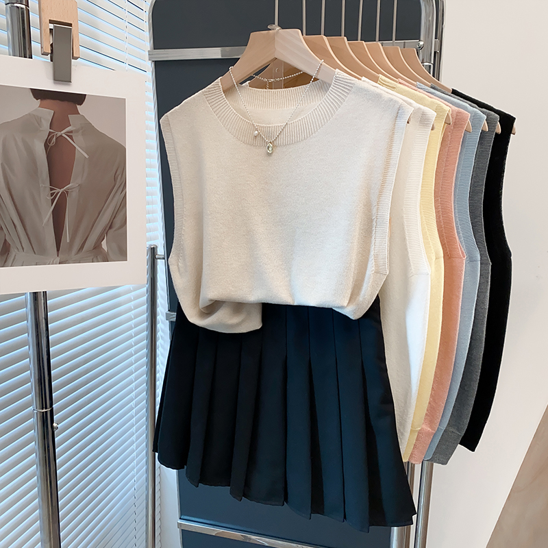 羊毛圆领针织衫背心女无袖t恤衫