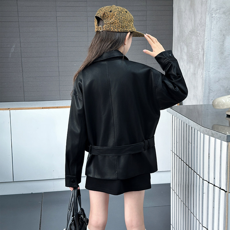 女童高级感气质皮衣外套春秋装2025新款儿童韩版洋气显瘦夹克上衣